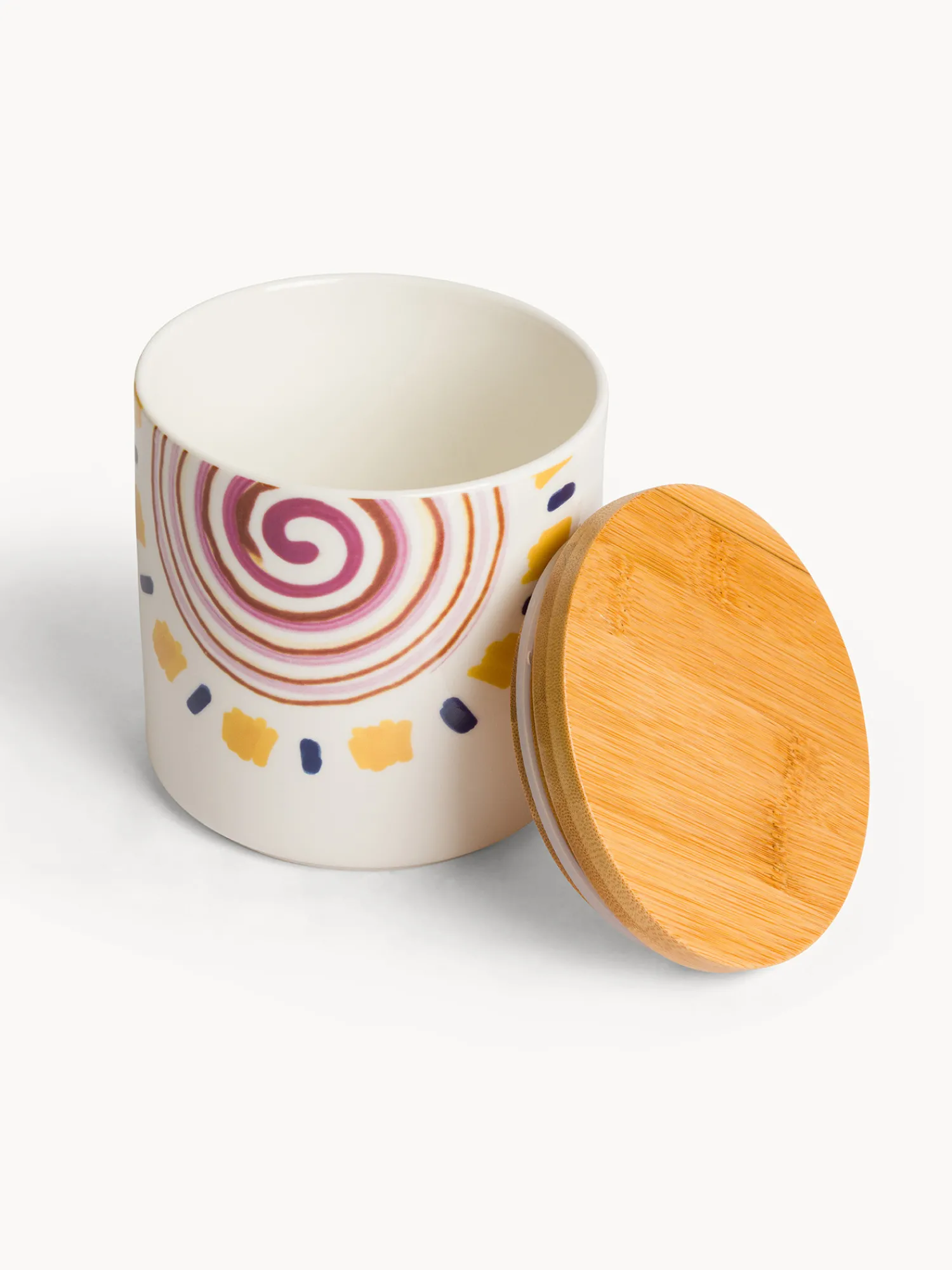 - Barattolo in porcellana con coperchio in bambo. Perfetto per conservare spezie, zucchero, tè, caffè o piccoli alimenti, questo barattolo unisce materiali di qualità e uno stile raffinato, rendendo la tua cucina più ordinata e sofisticata. Realizzato in porcellana resistente con decorazioni astratte, il corpo del barattolo è elegante e moderno, ideale per chi ama il design contemporaneo e dettagli originali. Il coperchio in bambo naturale garantisce chiusura ermetica e praticità d’uso, mentre aggiunge un tocco caldo e naturale al design complessivo.