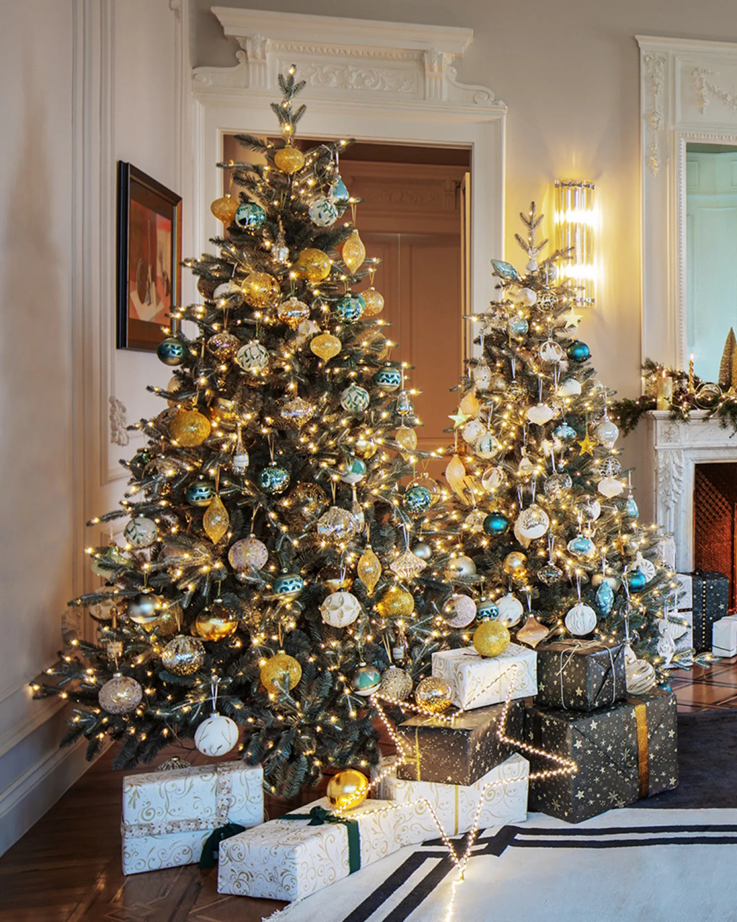 - Albero di Natale affusolato scomponibile con folti rami con sfumature in verde. Piedistallo in metallo, in tinta. Integrato con 250 led luce calda. Altezza: 215 cm.