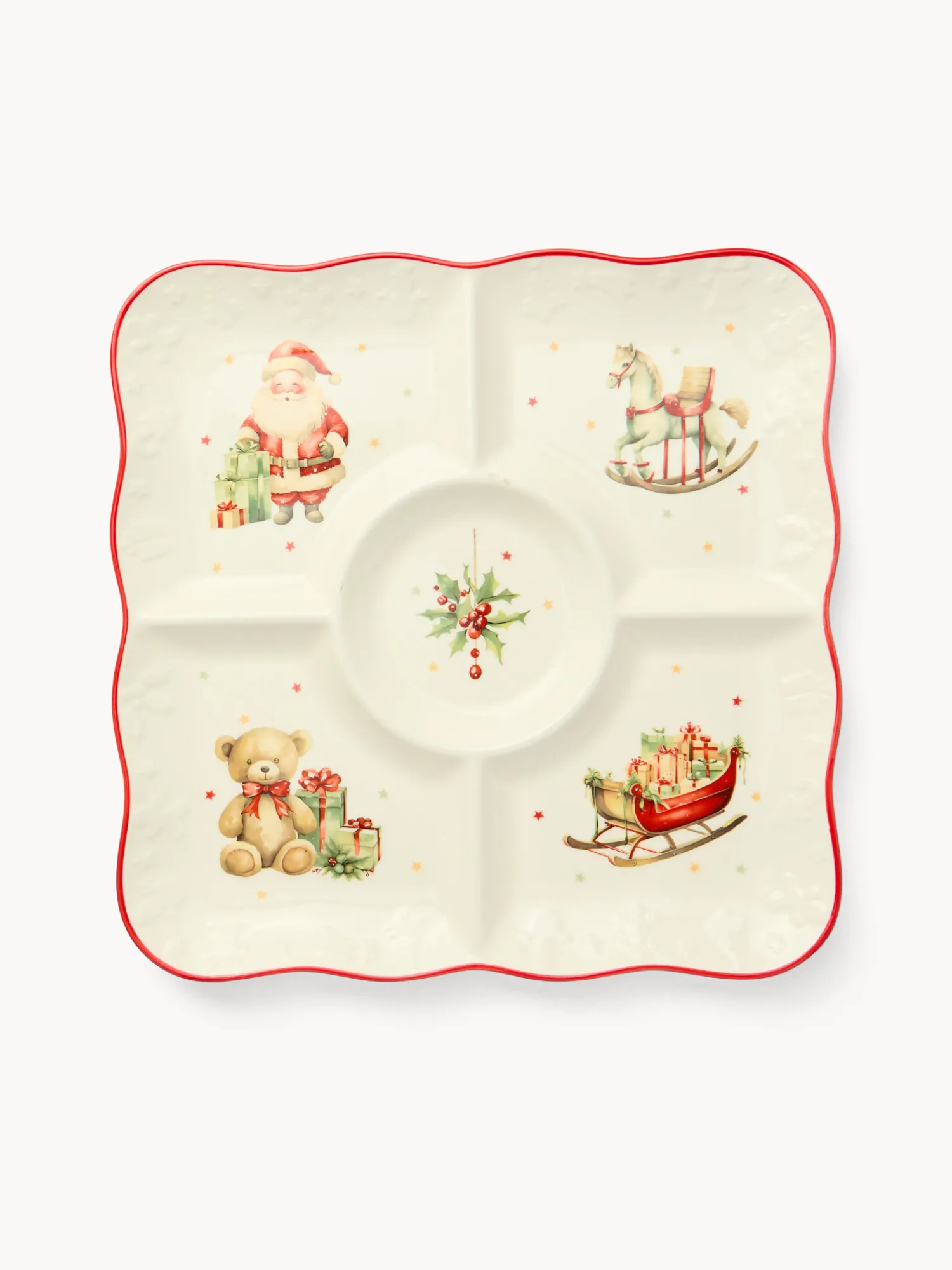 - Antipastiera quadrata in porcellana Natale vintage.