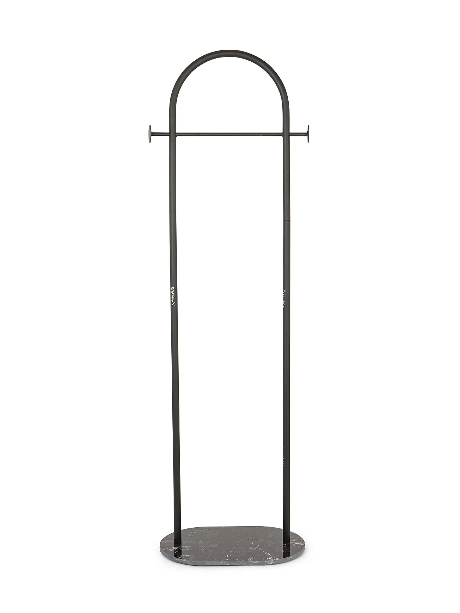 - Appendiabiti con base in marmo nero e struttura in ferro verniciato.