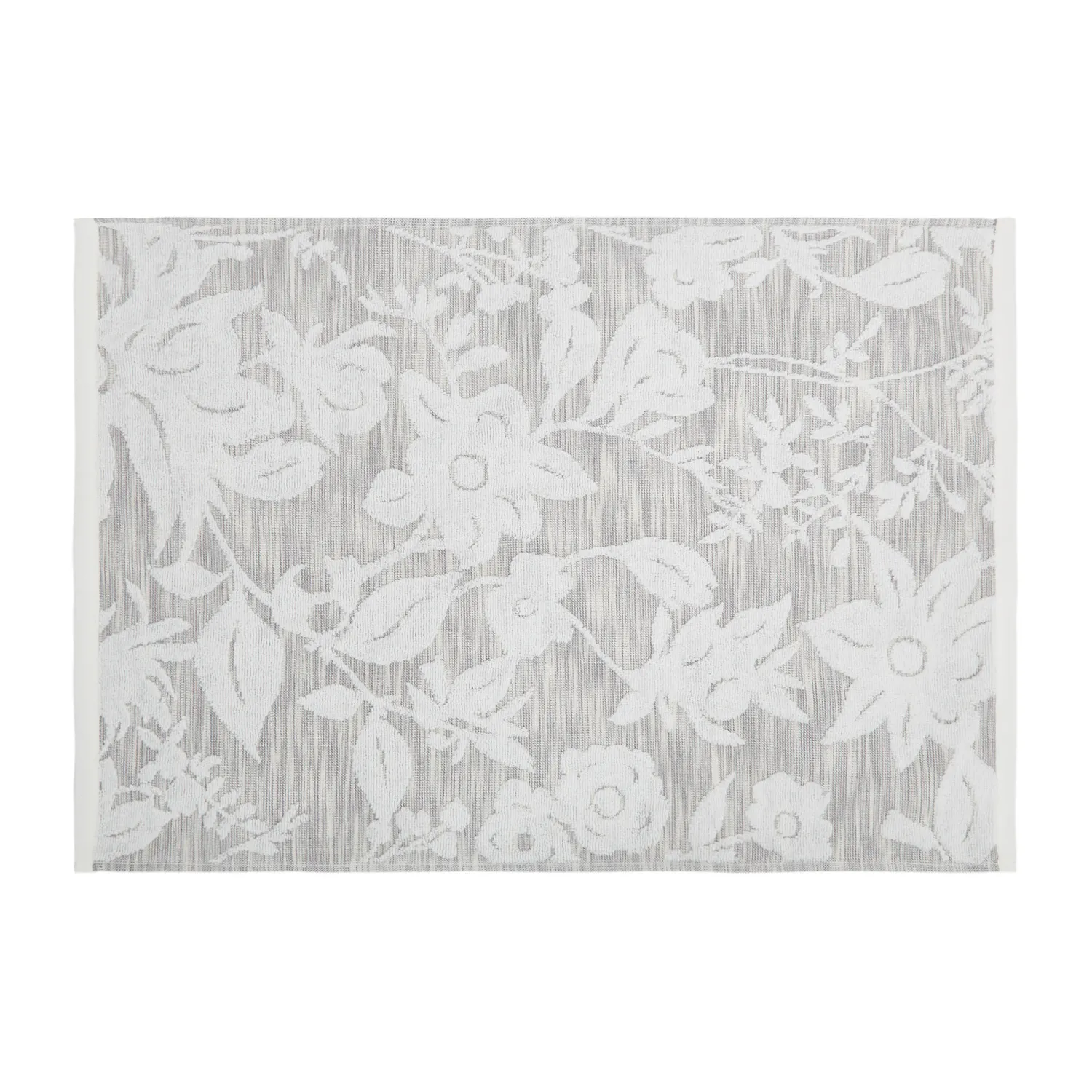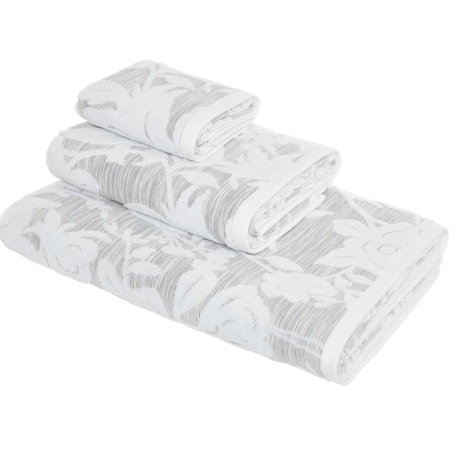 - Asciugamano ospite in cotone jacquard con motivo floreale. La matassa di filo viene “iniettata†di vari colori rendendo il filo multi colorato. In fase di tessitura crea dei giochi di colore effetto melange. Il disegno e a rilievo in spugna bianca. Grammatura 500 gr/m². Linea Portofino.