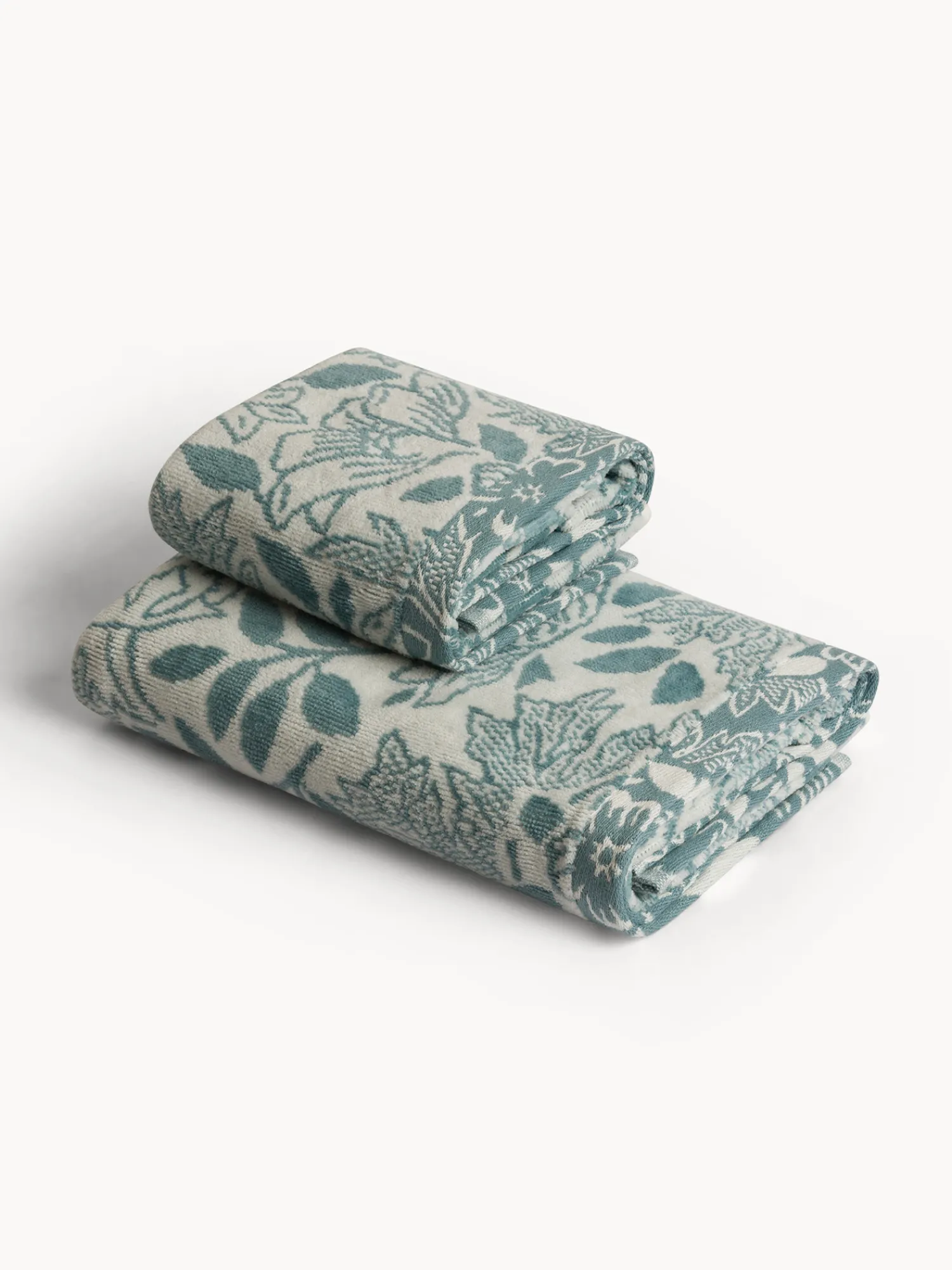 - Asciugamano ospite tinto in filo in puro cotone velour con fantasia floreale, morbido e avvolgente.