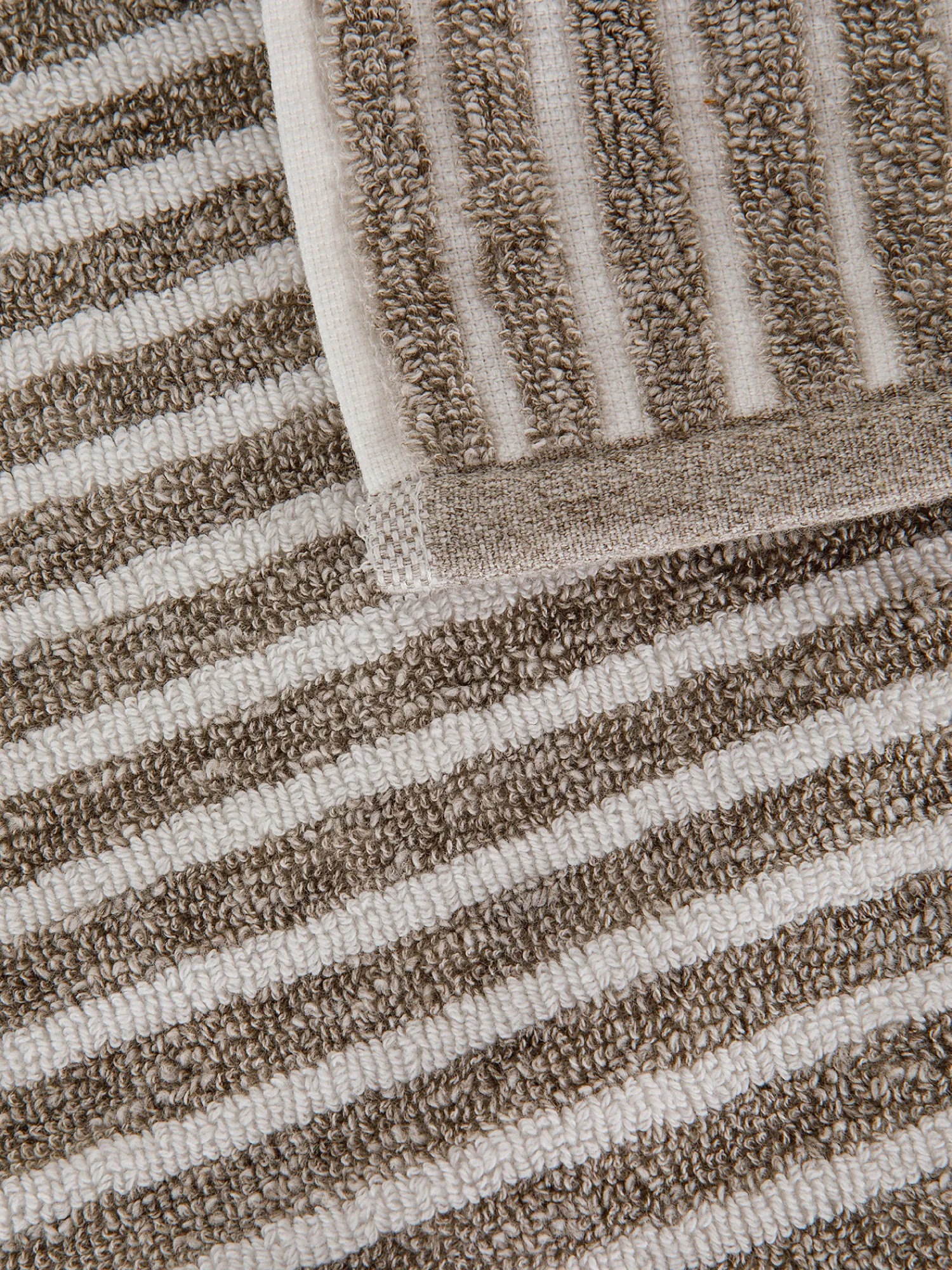 - Asciugamano ospite in morbido cotone a righe melange. Grammatura: 500gr/mq.