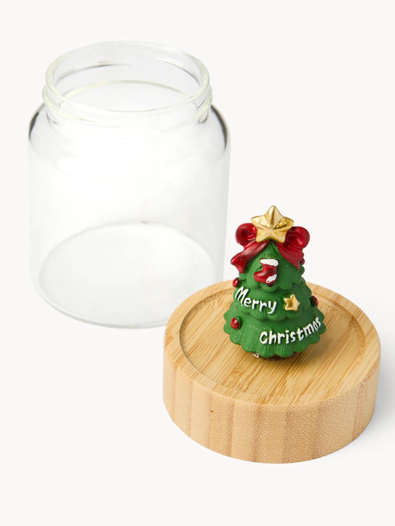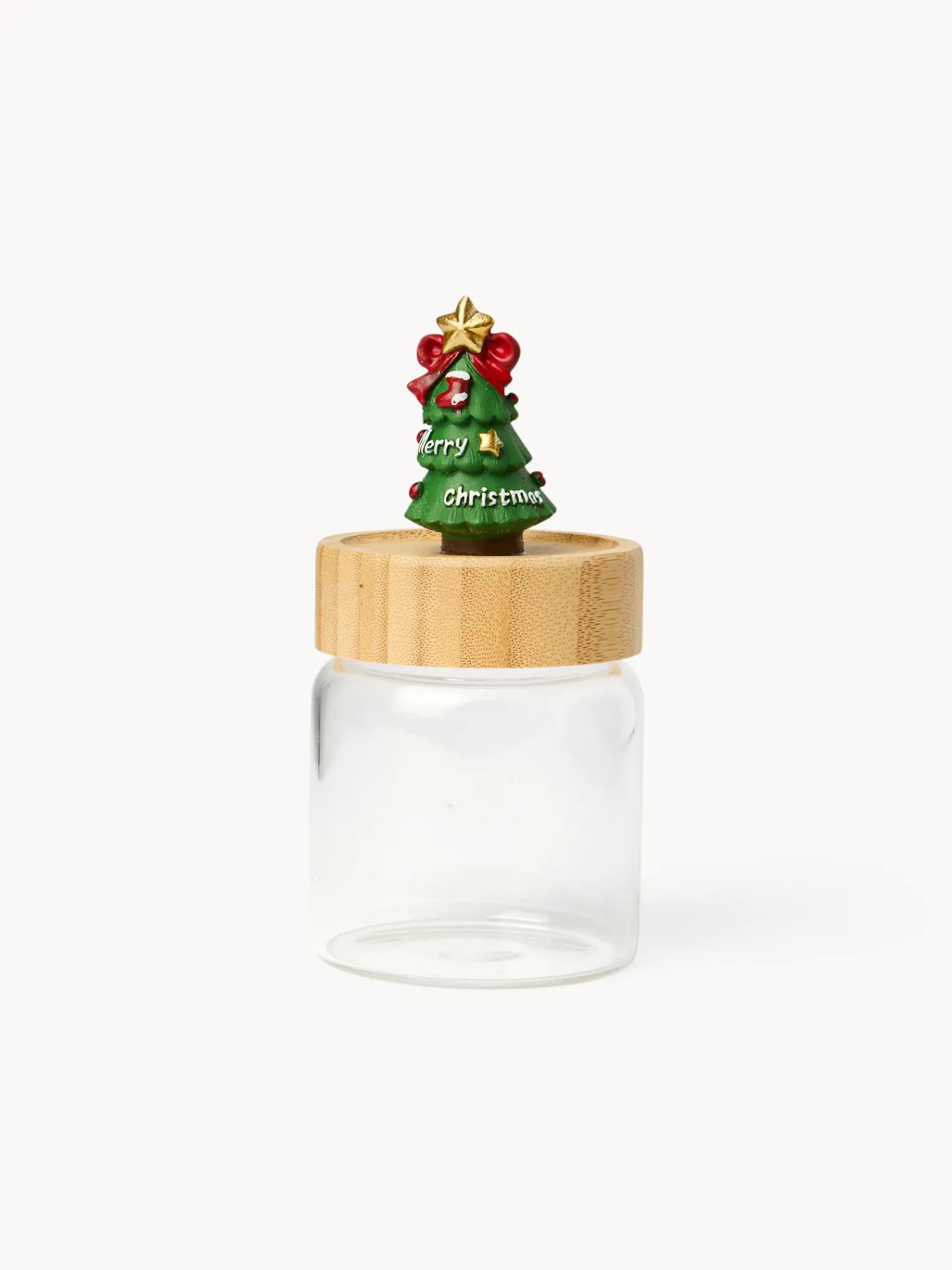 - Barattolo in vetro con tappo in legno ad alberello.