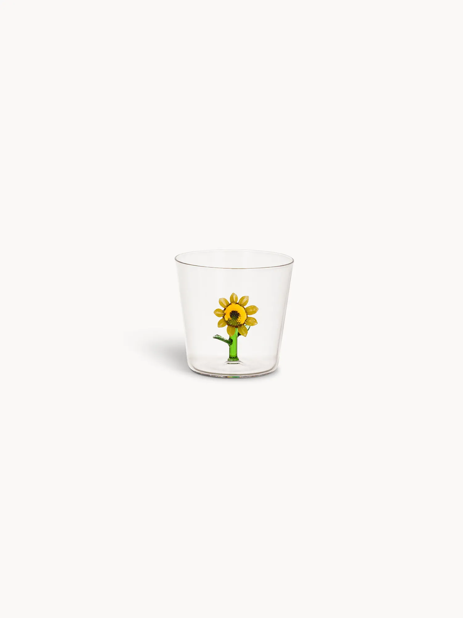 - Bicchiere in vetro borosilicato con delicato dettaglio a forma di fiore. Il vetro resistente garantisce durata e praticità nell’uso quotidiano, mentre il motivo floreale aggiunge un tocco raffinato e scenografico alla tavola.