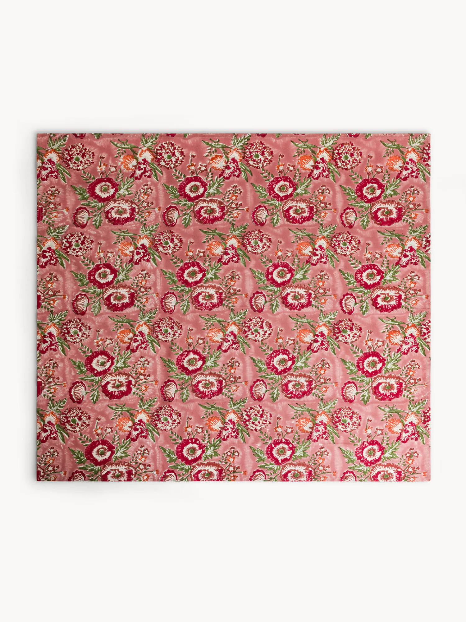 - Centrotavola in puro cotone con stampa block print floreale. La tecnica di stampa block print è una tecnica molto antica, tipica dell’Asia, inizialmente utilizzata per tessuti di pregio destinati alla nobiltà. Gli artigiani creano dei blocchi di legno intarsiati che, intinti nel colore, vengono impressi più volte nella stoffa. Si creano così disegni unici, imperfetti ed autentici.