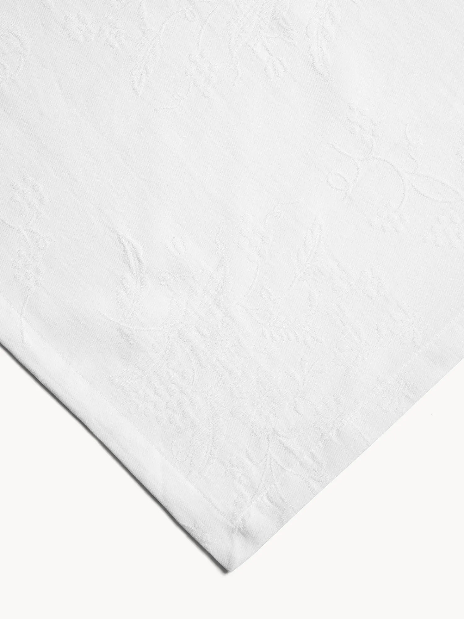 - Centrotavola in puro cotone jacquard con raffinato motivo floreale, perfetto per aggiungere un tocco di eleganza minimalista e romanticismo discreto alla tavola. Realizzato in Portogallo, questo centrotavola combina qualità artigianale e stile sofisticato, valorizzando ogni occasione conviviale con classe e gusto senza tempo.