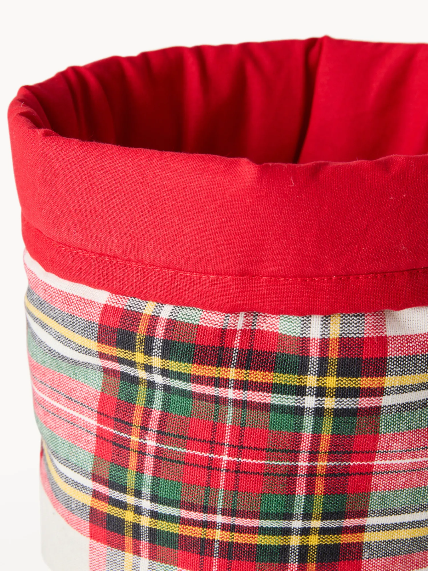 - Cestino rotondo tartan in puro cotone tinto filo. Un dettaglio semplice ma speciale che trasforma ogni gesto ai fornelli in un momento dal sapore natalizio.