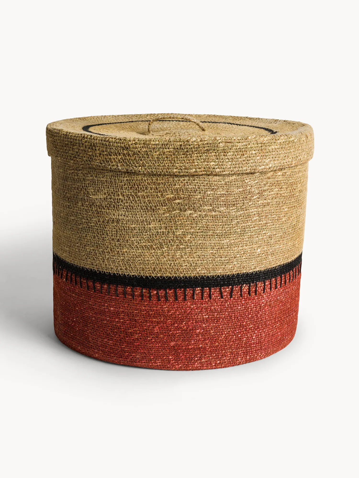- Cesto in seagrass (alghe marine) essiccato al sole, interecciato e dipinto a mano.