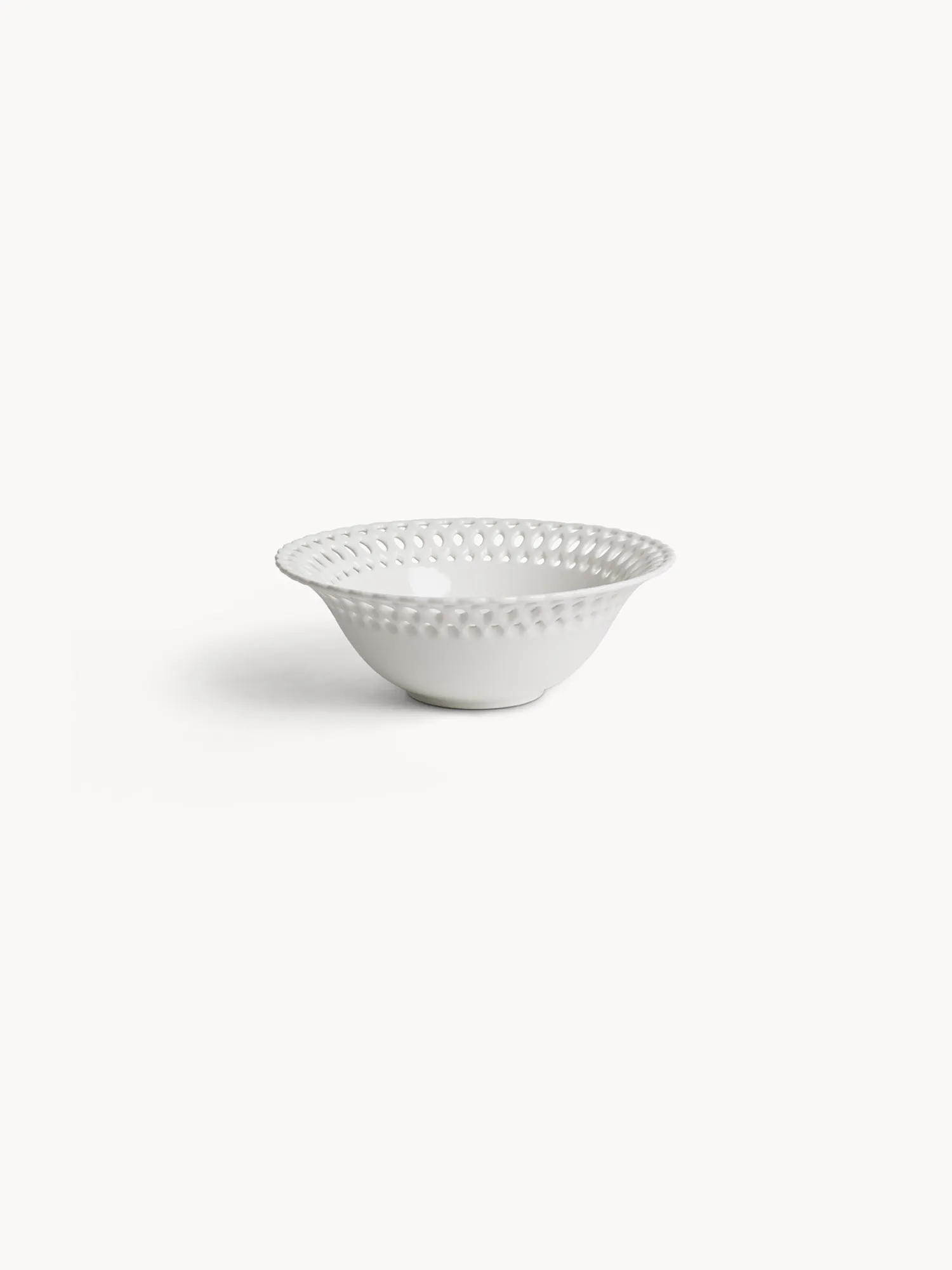 - Coppa in porcellana traforata dallo stile raffinato ed elegante.