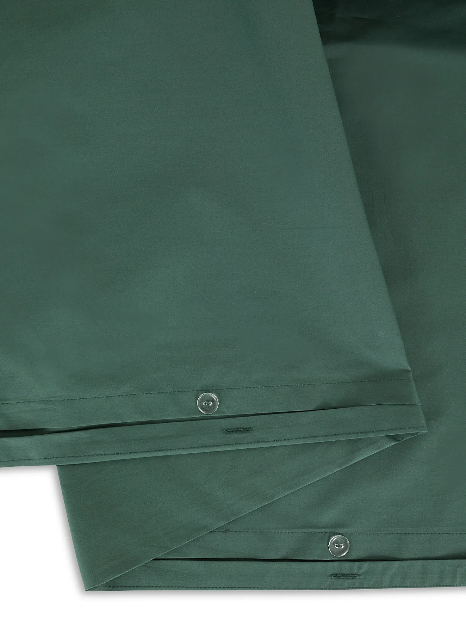- Copripiumino per letto matrimoniale in cotone percalle 200TC tinta unita, finissaggio no stiro, prodotto in Italia, chiusura sul fondo con bottoni, certificato Oekotex