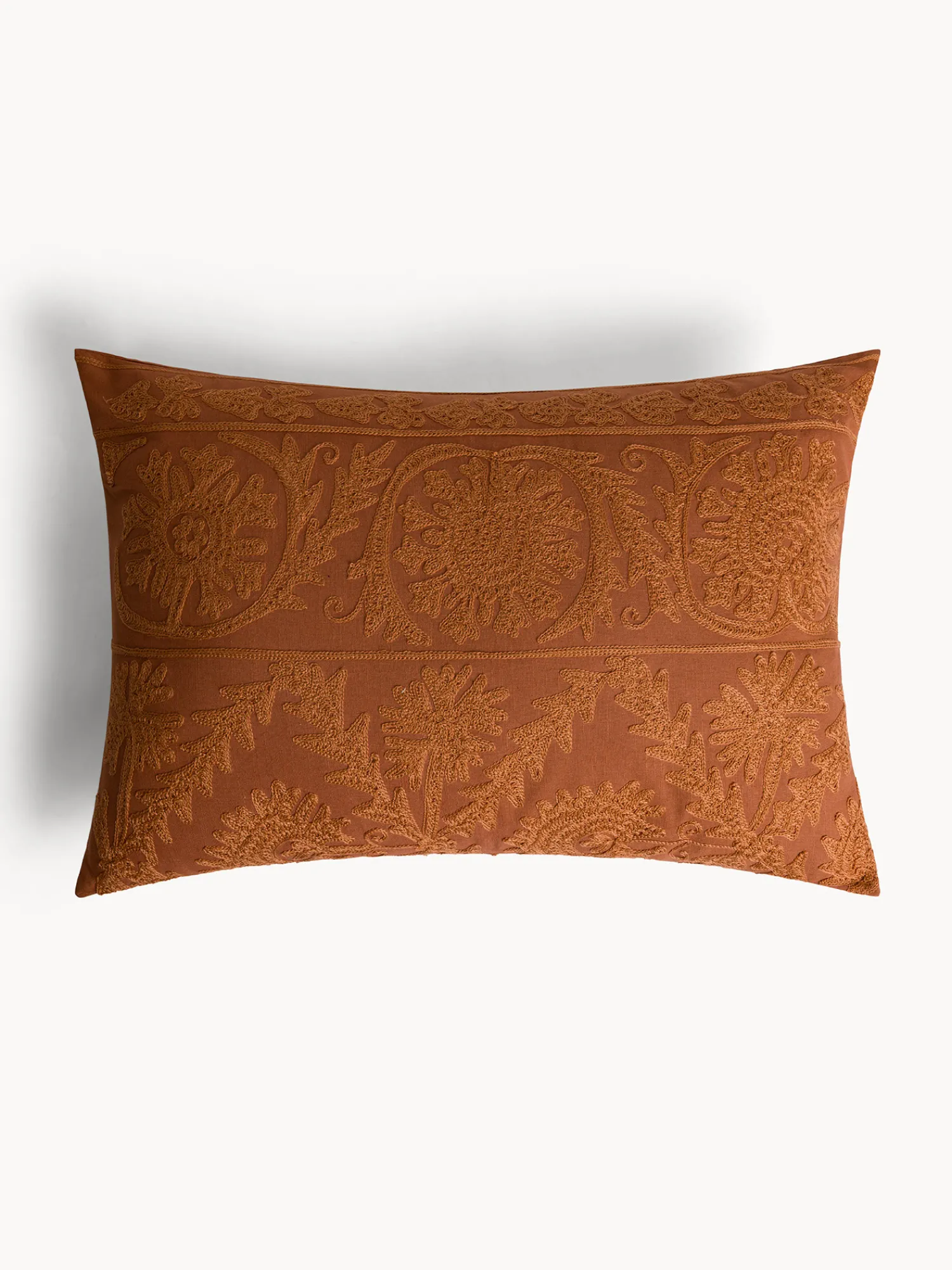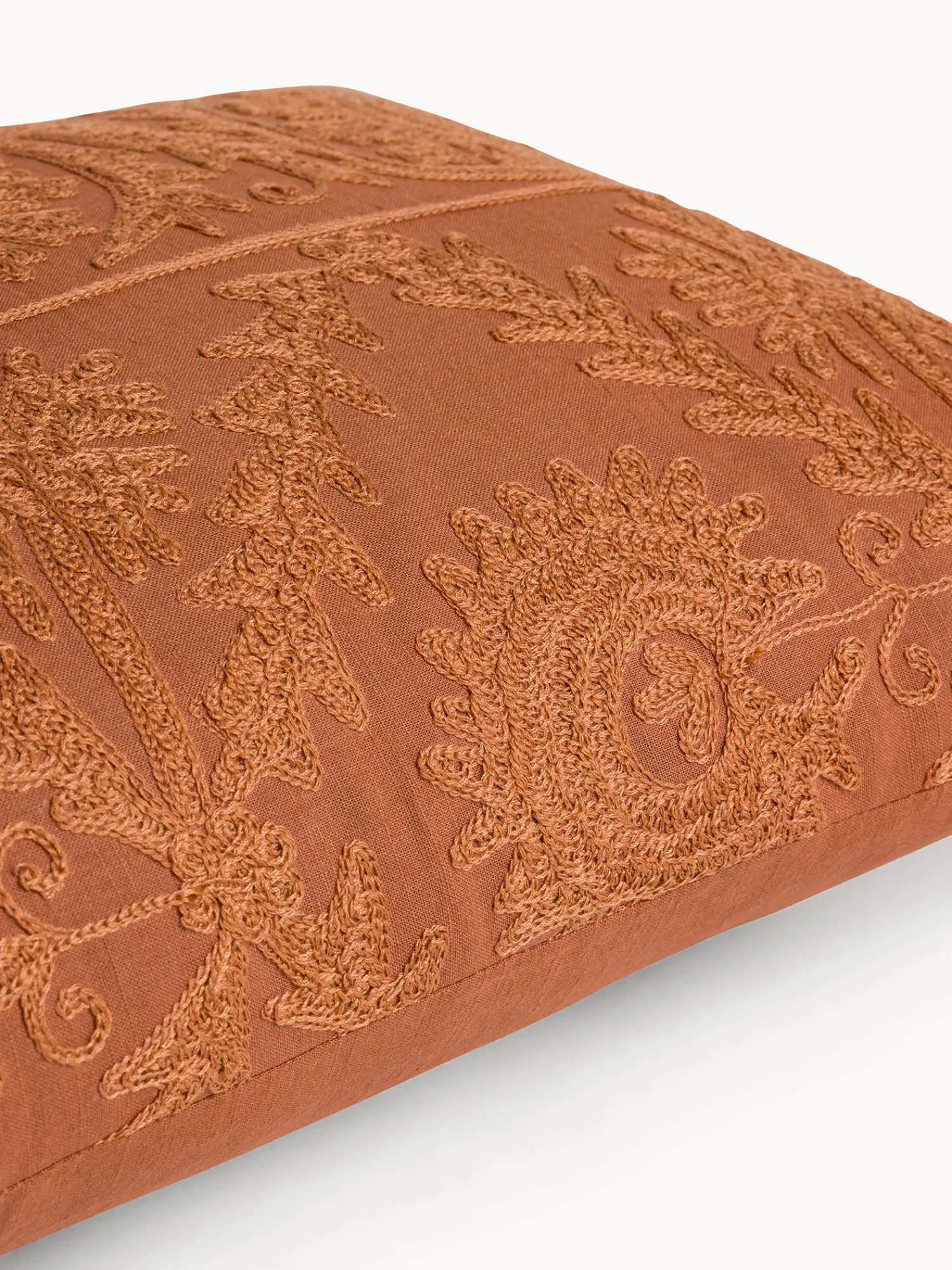 - Cuscino in cotone impreziosito da un ricamo etnico a catenella, realizzato con grande maestria e cura artigianale. Ogni punto crea disegni continui e armoniosi, valorizzando la tradizione del fatto a mano. La federa è rimovibile e lavabile, con imbottitura interna inclusa per un comfort ottimale. Chiusura con zip. Disponibile in 2 colori.