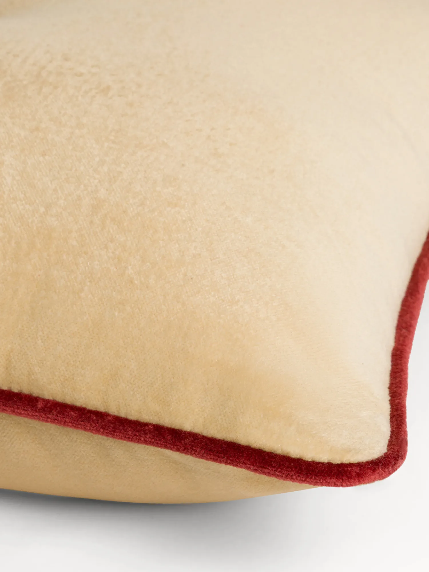 - Cuscino in velluto di cotone arricchito da un bottone centrale e piping a contrasto, per un elegante dettaglio decorativo. La federa è rimovibile e lavabile, con imbottitura interna inclusa per massimo comfort. Chiusura con zip. Disponibile in 2 colori.