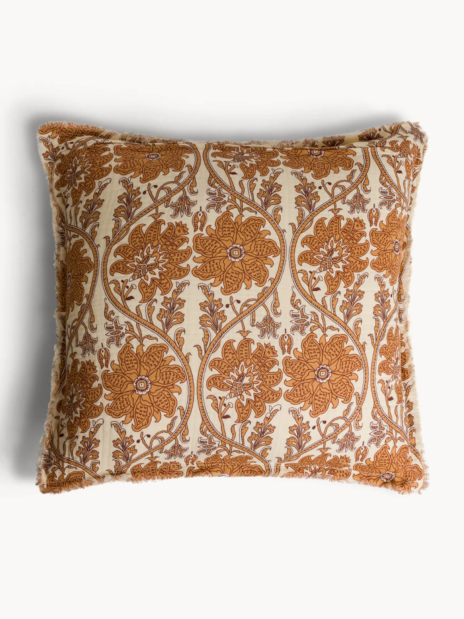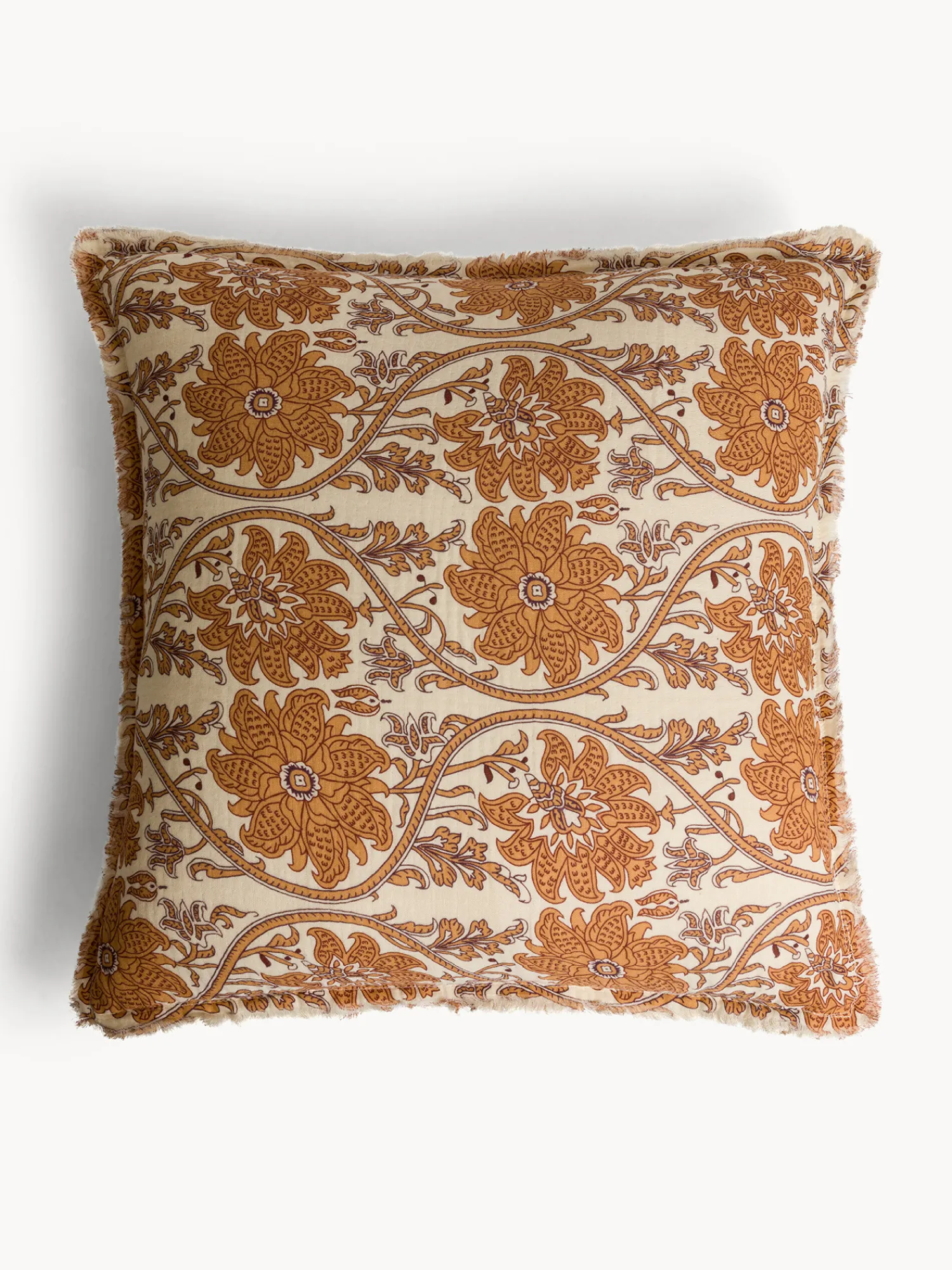 - Cuscino in garza di puro cotone con delicata stampa floreale e applicazioni di frangette sui bordi, per un tocco di stile leggero e raffinato. La federa è rimovibile e lavabile, con imbottitura interna inclusa. Chiusura con zip per una gestione facile e pratica.