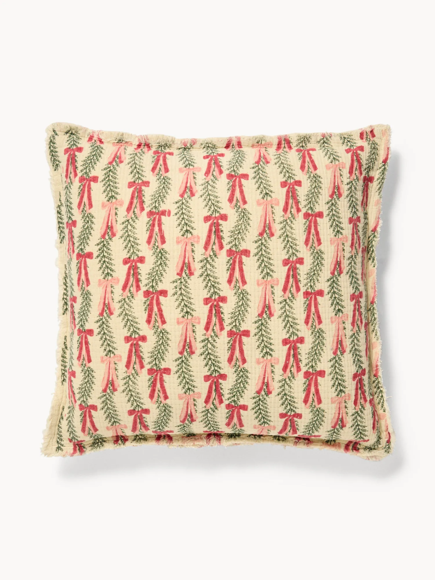 - Cuscino 50×50 in garza di cotone con frangette. Porta lo spirito del natale nel tuo soggiorno con il cuscino in morbida garza di cotone, arricchito da graziose frangette nei bordi laterali. La federa è rimovibile e lavabile, con imbottitura interna inclusa. Chiusura con zip.