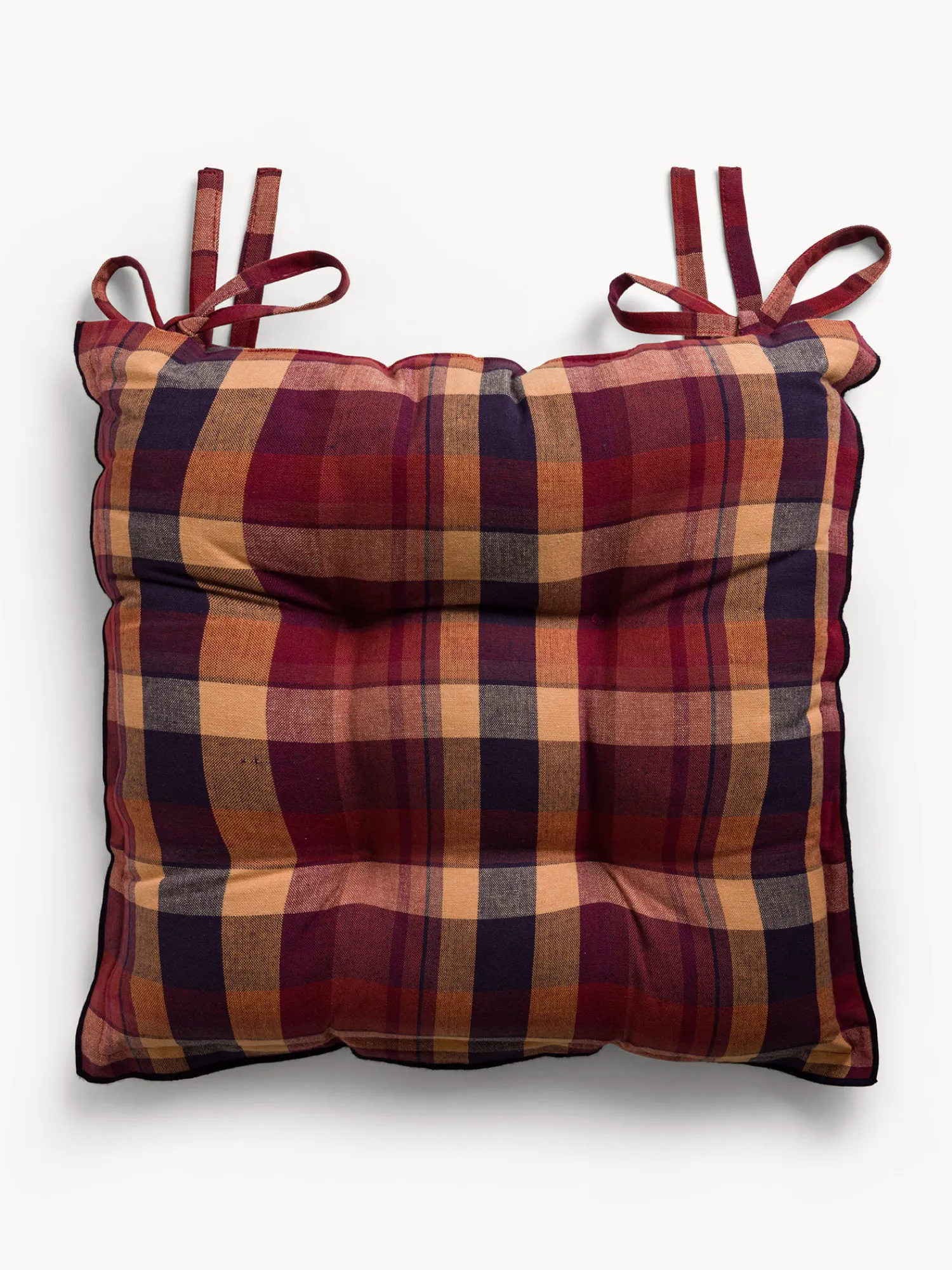 - Cuscino da sedia con lacci motivo check in puro cotone tinto filo. Interno in poliestere.