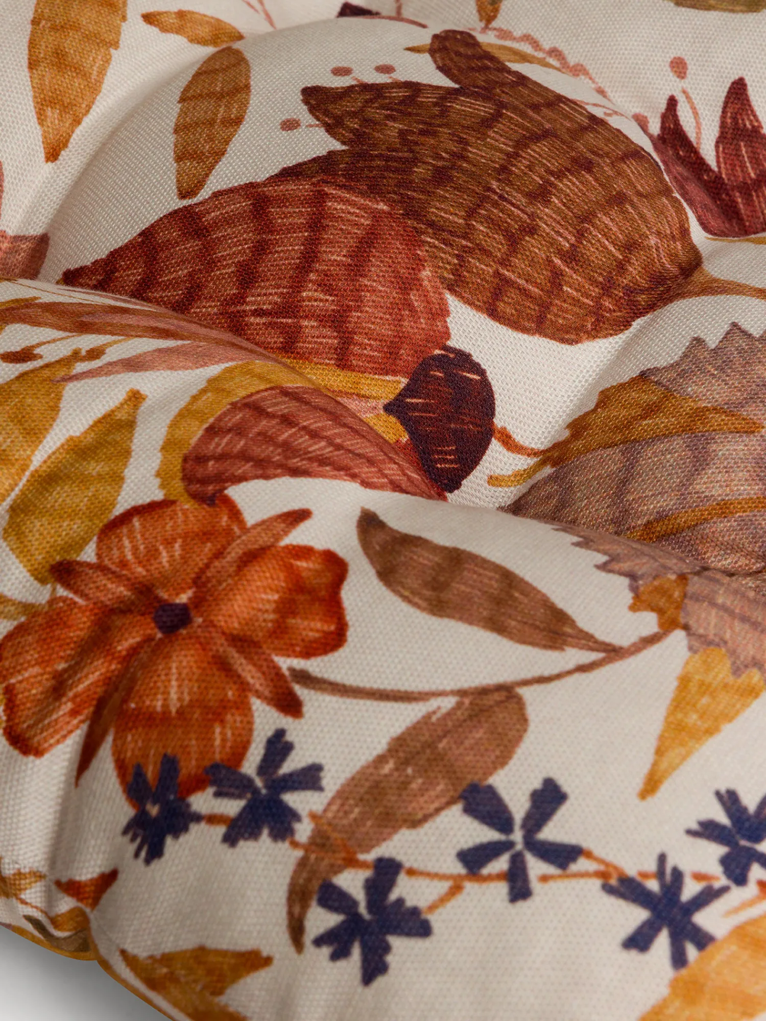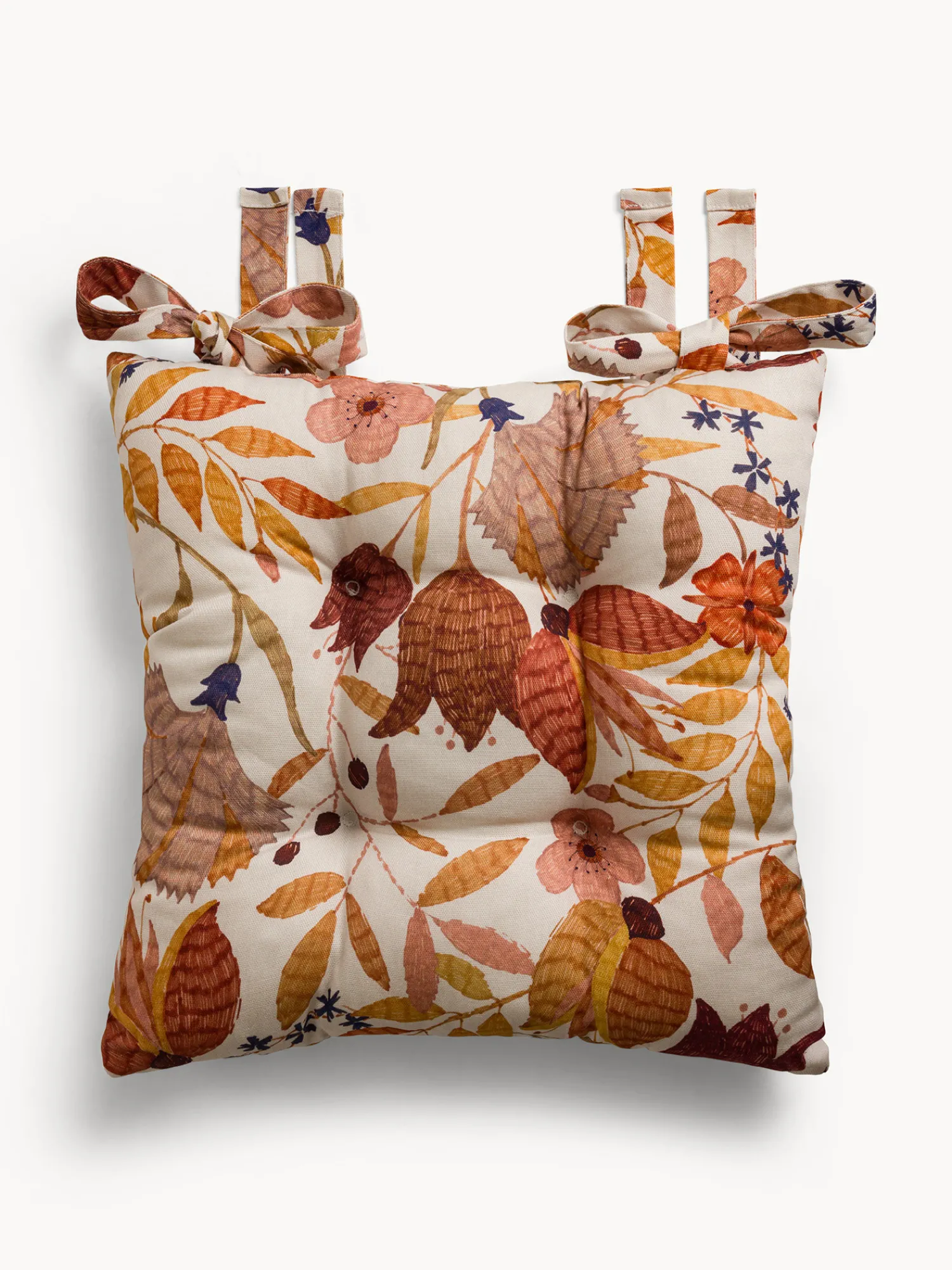 - Cuscino da sedia in panama di puro cotone con raffinata stampa foliage, dotato di pratici lacci per una perfetta fissazione. L’imbottitura in poliestere garantisce comfort e sostegno, rendendolo ideale per rendere ogni seduta più accogliente e decorativa. Un dettaglio elegante che unisce stile naturale e funzionalità, perfetto per arricchire la tua tavola o il living con un tocco autunnale.