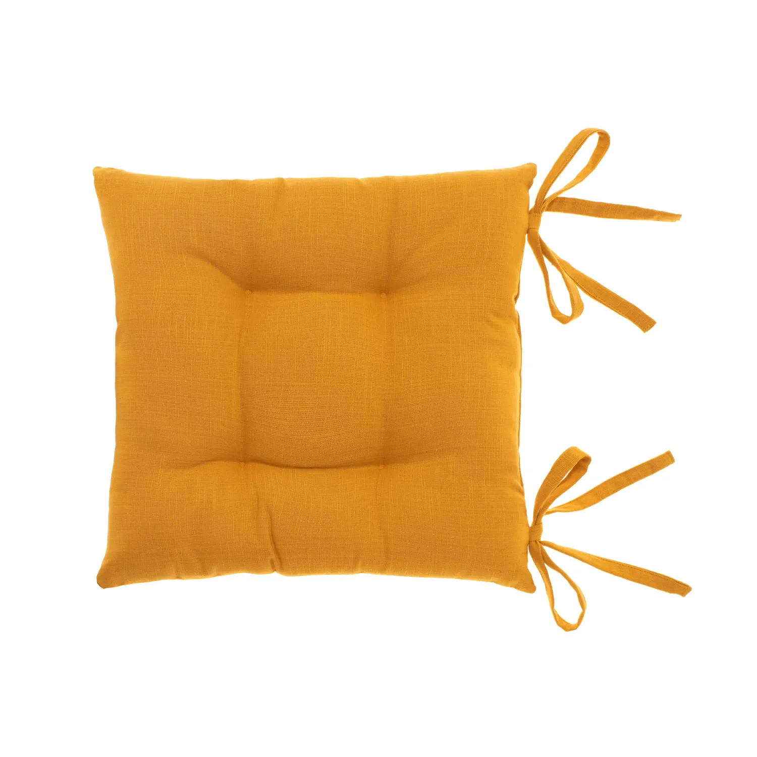 - Cuscino da sedia rivestito in puro cotone mélange. Lavorazione a trama fiammata. Laccetti per fissaggio. Imbottitura inclusa.
