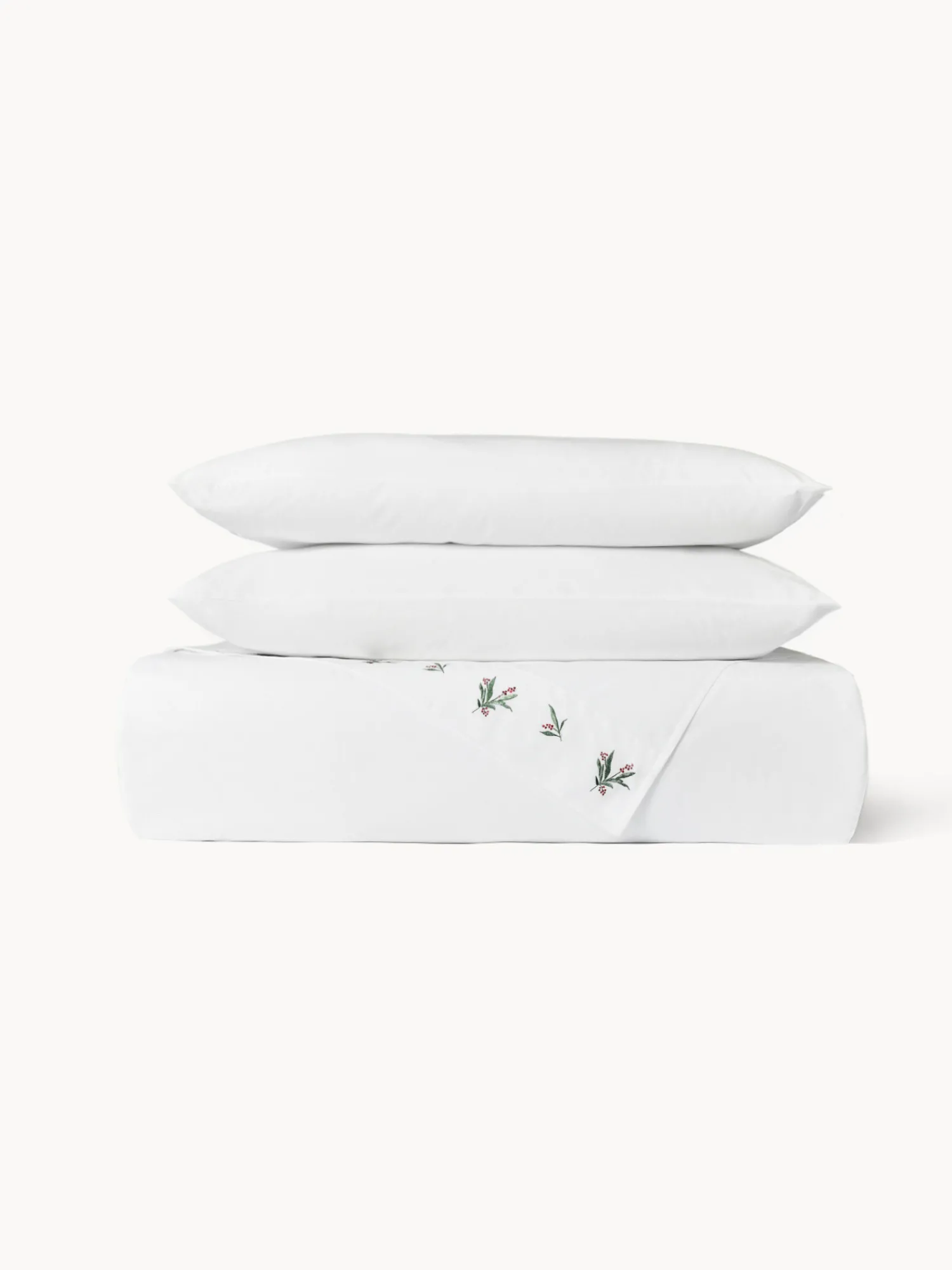 - Lenzuolo liscio per letto matrimoniale in percalle di cotone ricamato, certificato Oekotex. Federe non incluse, acquistabili separatamente.