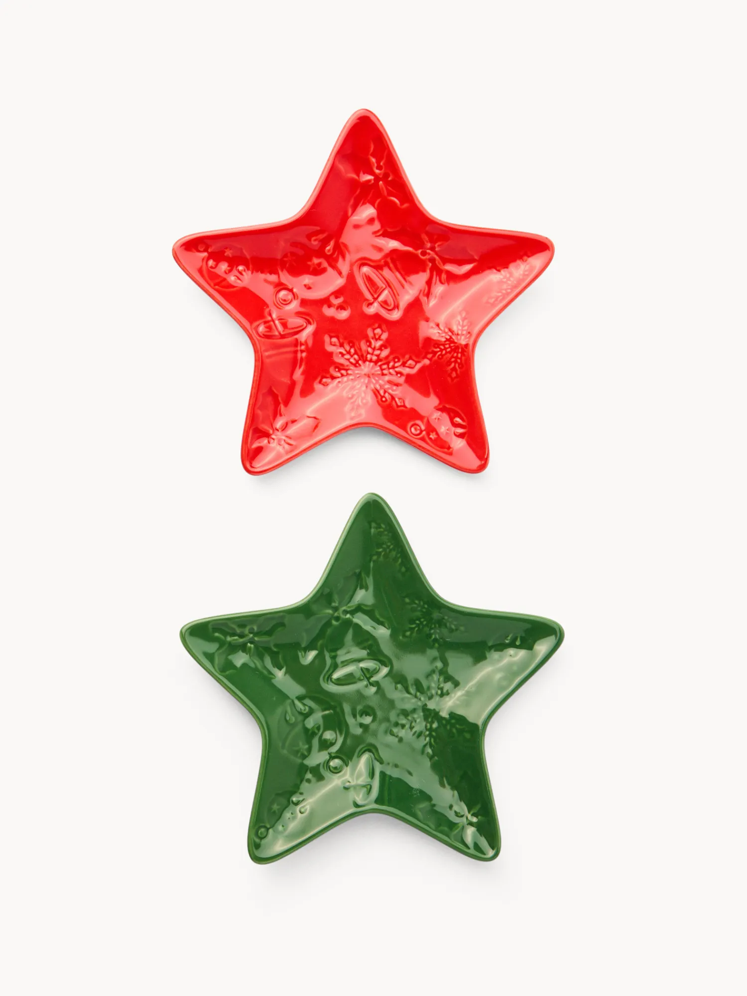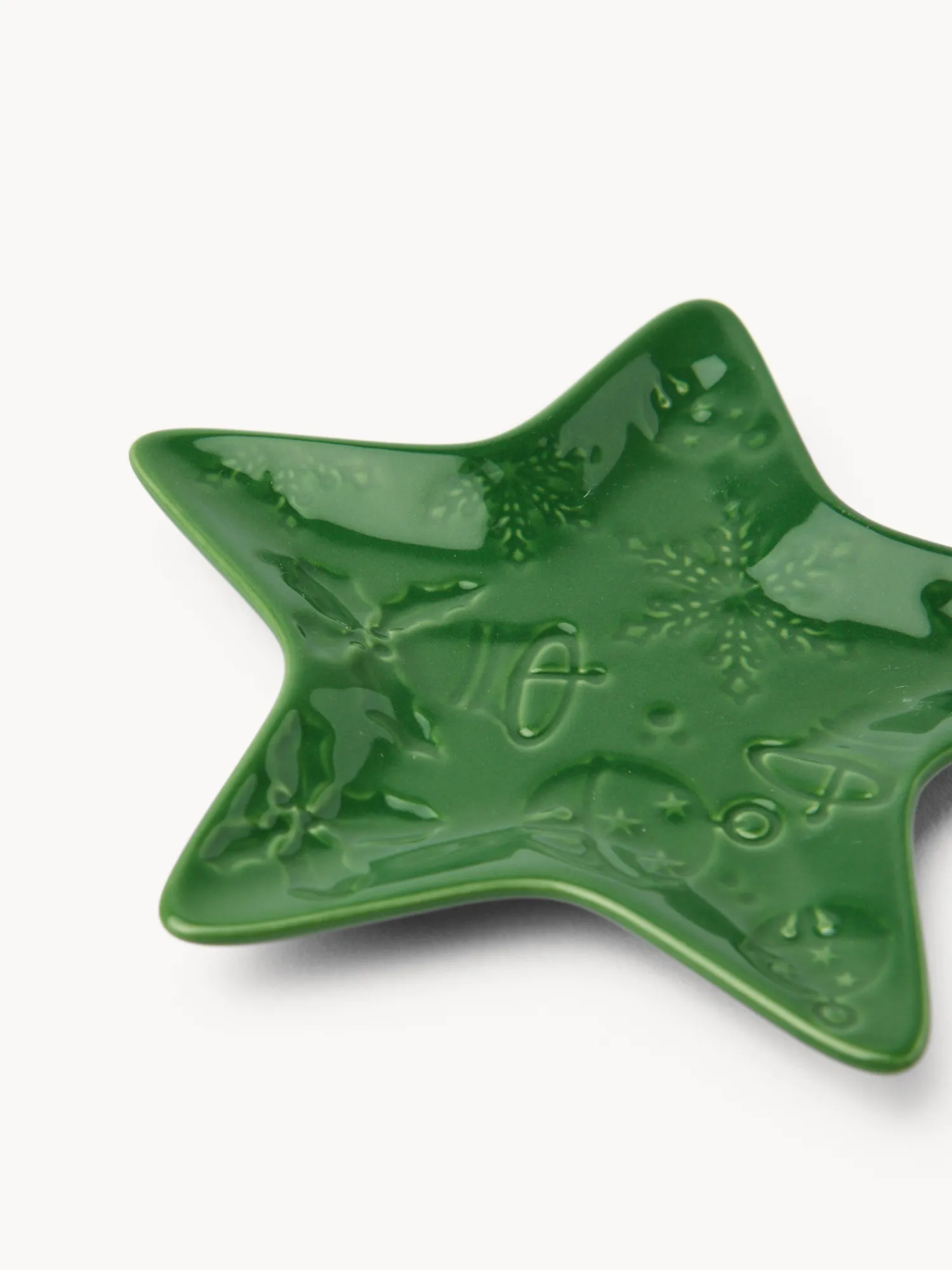 - Piattino a forma di stellina in porcellana, disponibile nei colori verde o rosso. Verrà consegnato uno dei due articoli, in base alla disponibilità del magazzino.