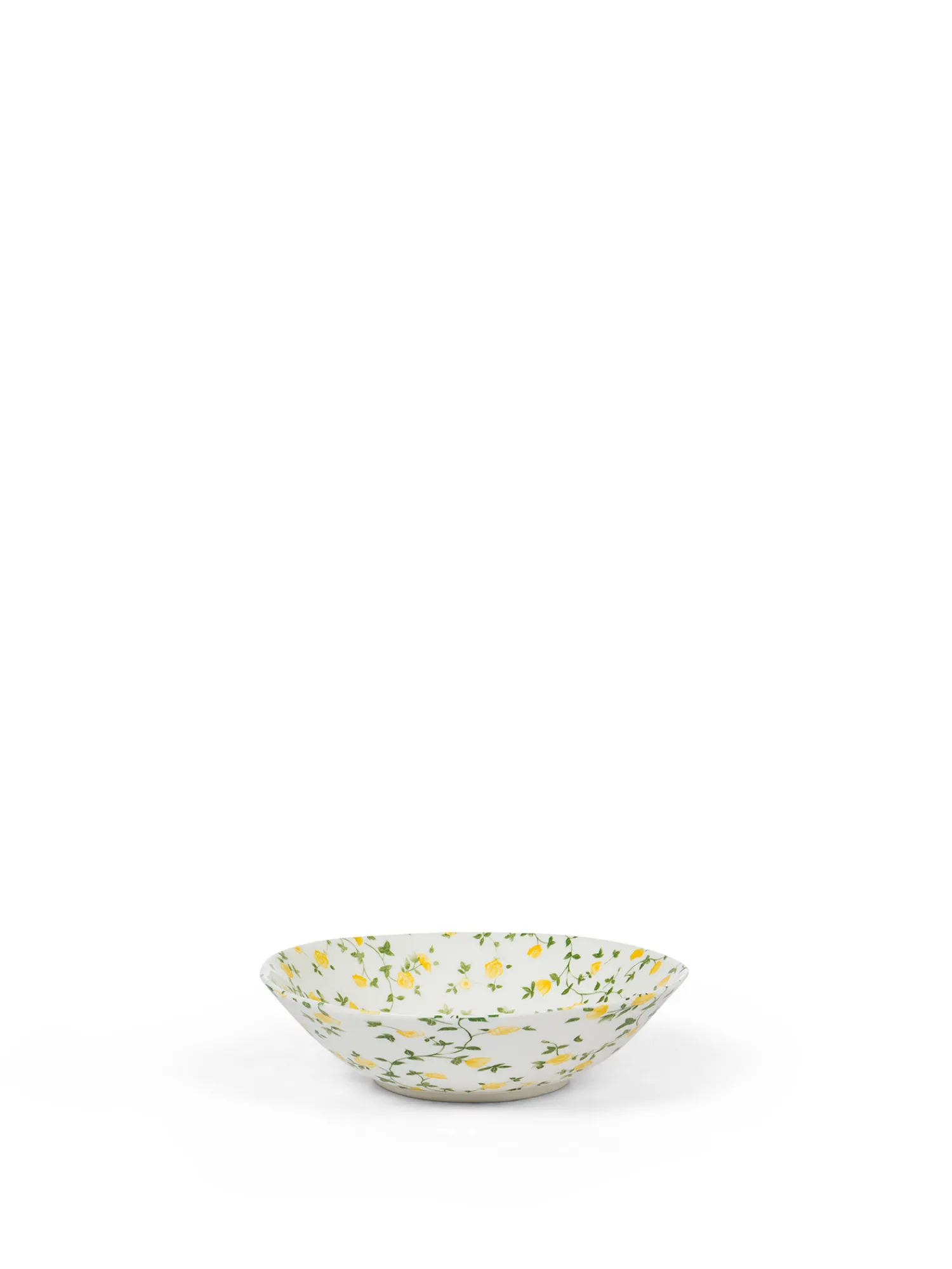 - Piatto fondo in porcellana motivo fiorellino giallo.