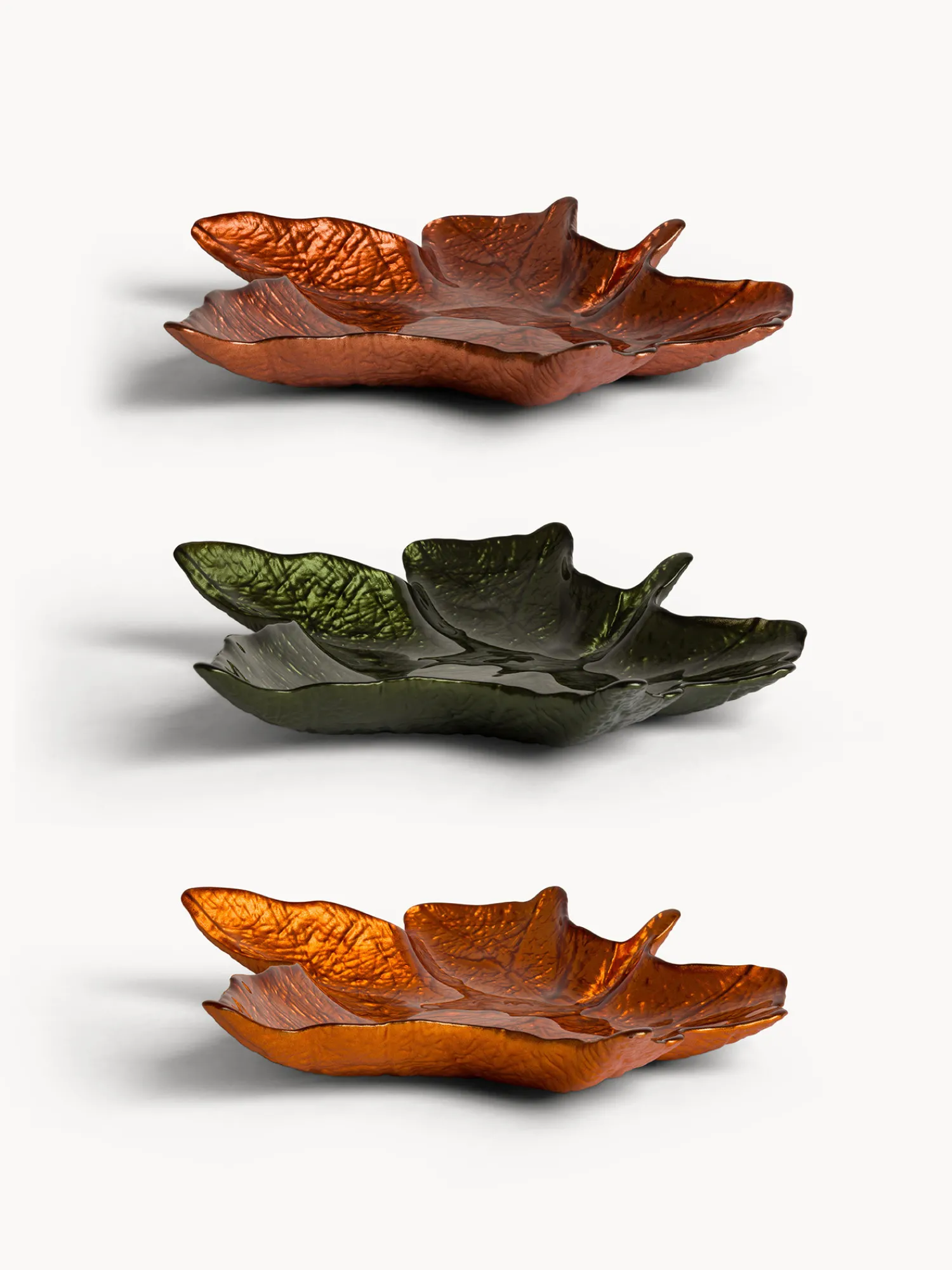 - Piatto in vetro a forma di foglia. La forma naturale e scenografica conferisce un tocco raffinato alla tavola, trasformando ogni servizio in un momento speciale. Realizzato in vetro resistente e di alta qualità, è adatto sia all’uso quotidiano sia a occasioni più ricercate, unendo funzionalità ed estetica. Verrà spedito uno degli articoli presenti in foto, a seconda della disponibilità del magazzino.