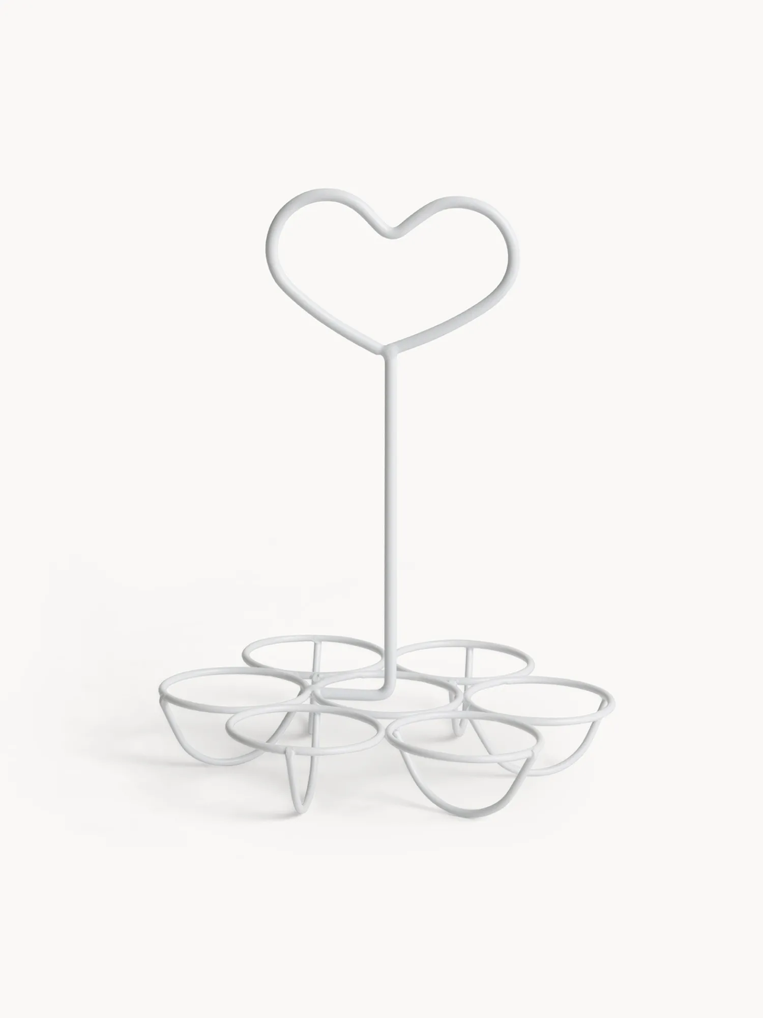 - Porta 6 uova a cuore in ferro smaltato bianco.
