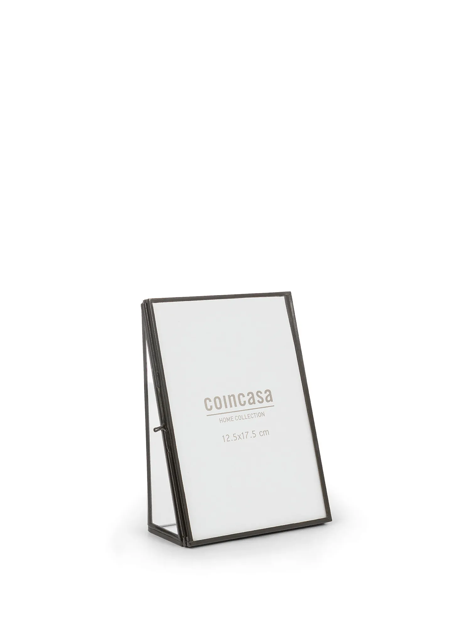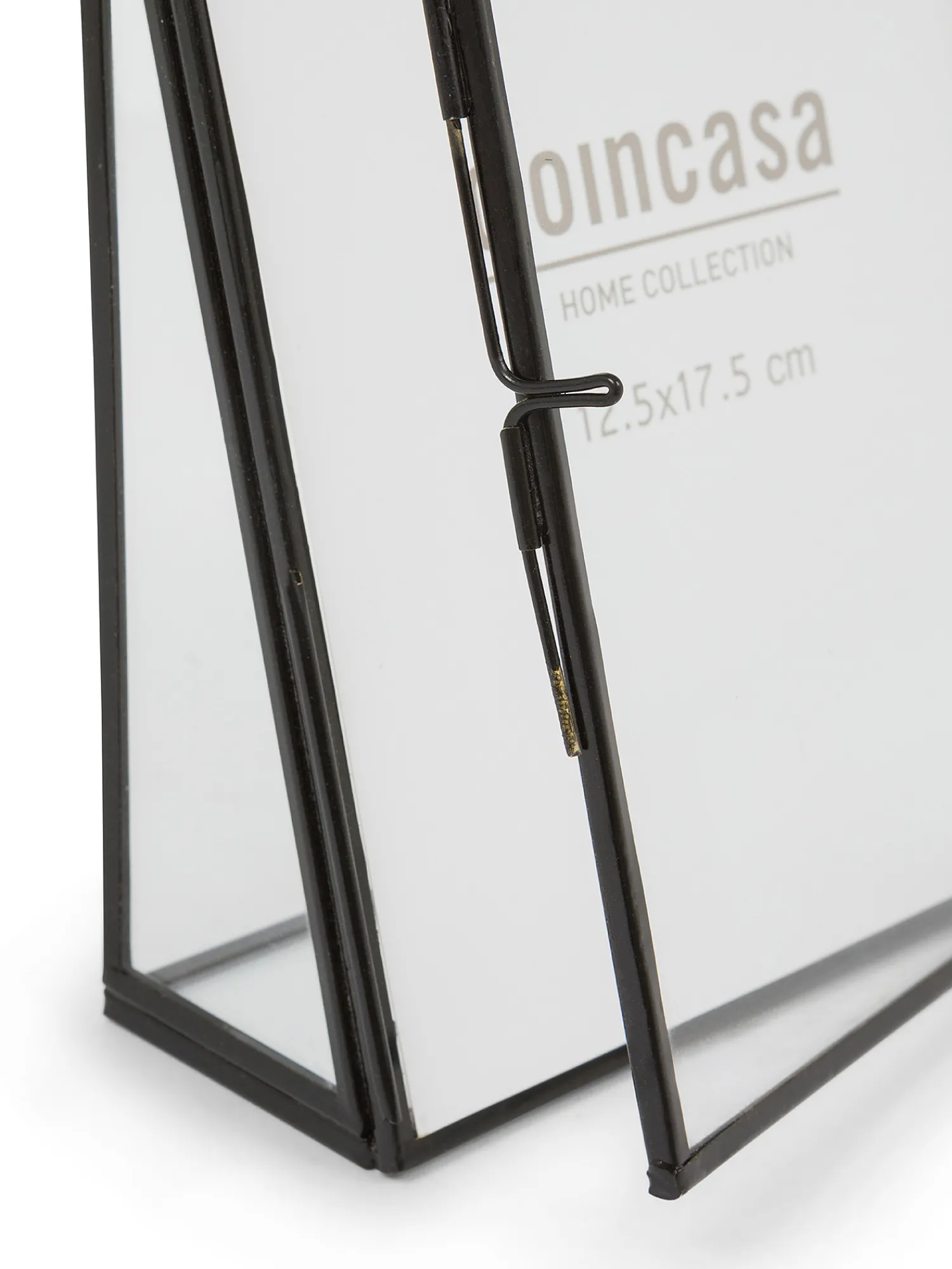 - Portafoto in vetro con profili in metallo nero e stand per appoggio