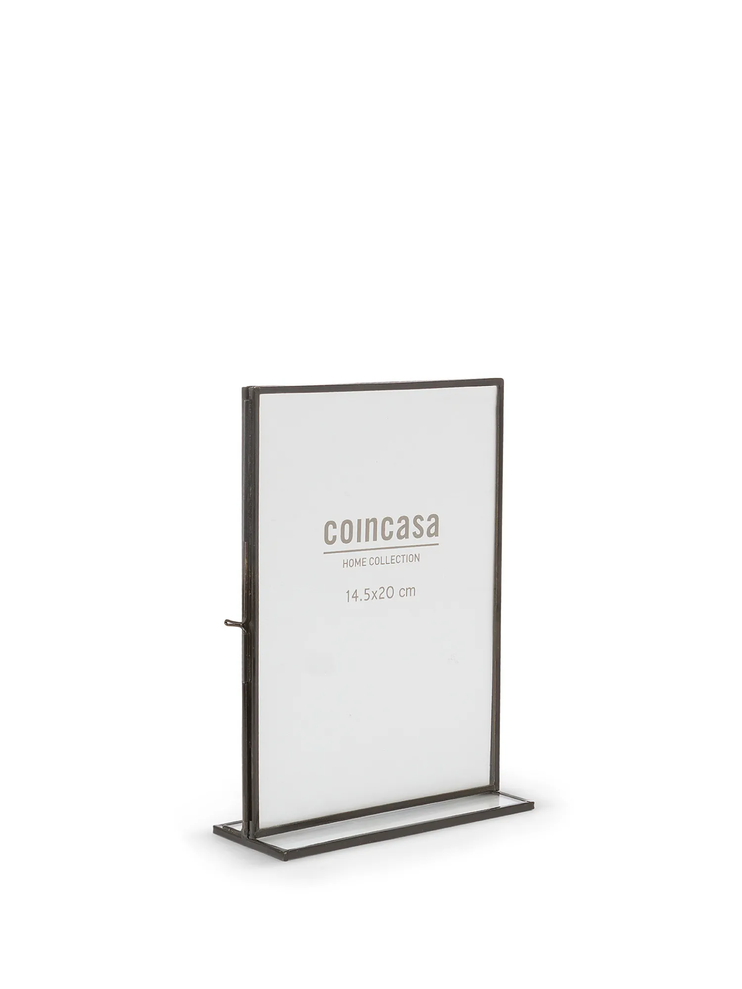 - Portafoto in vetro con profili in metallo nero e stand per appoggio