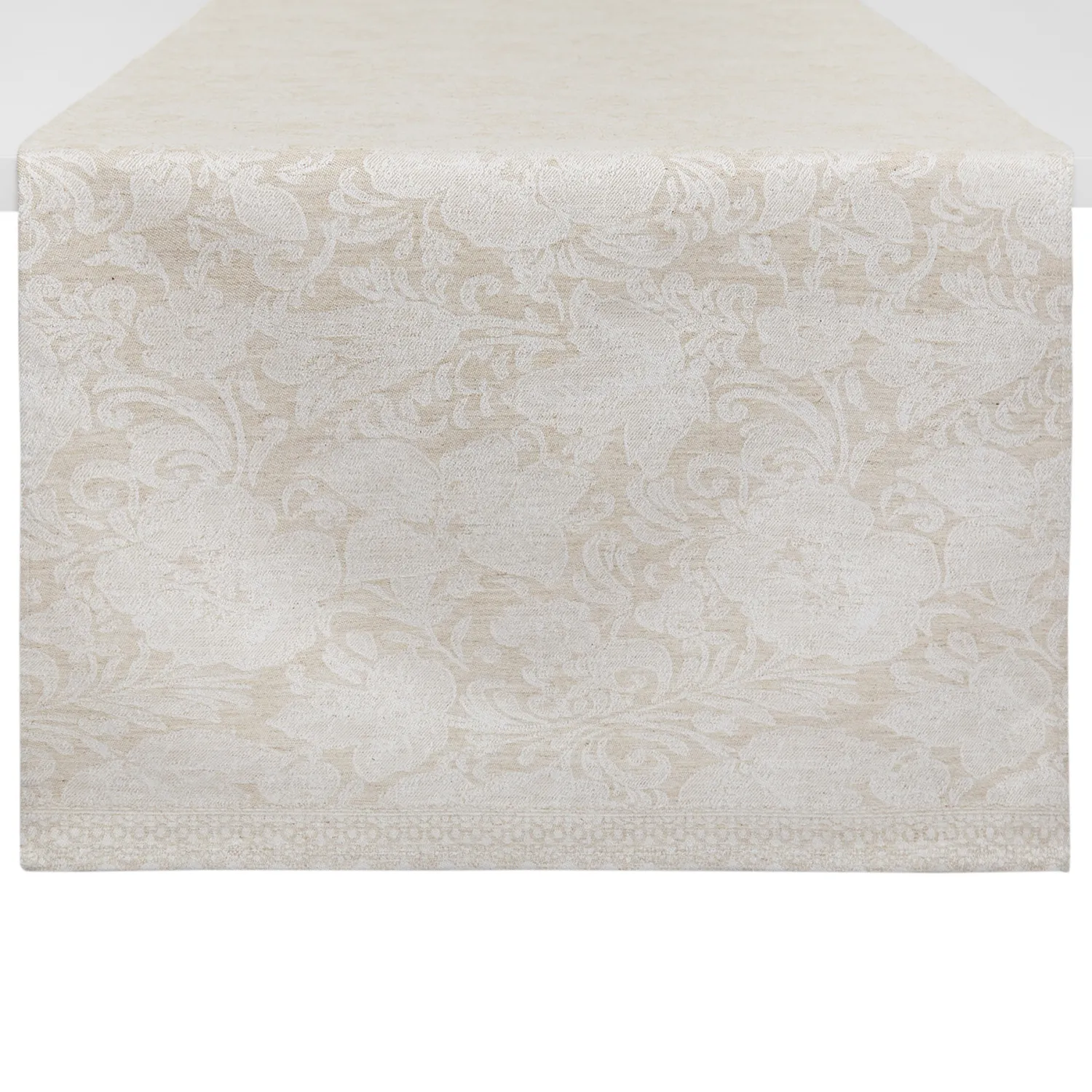 - Runner centrotavola in misto cotone a trama jacquard con motivo piazzato. Manifattura europea.
