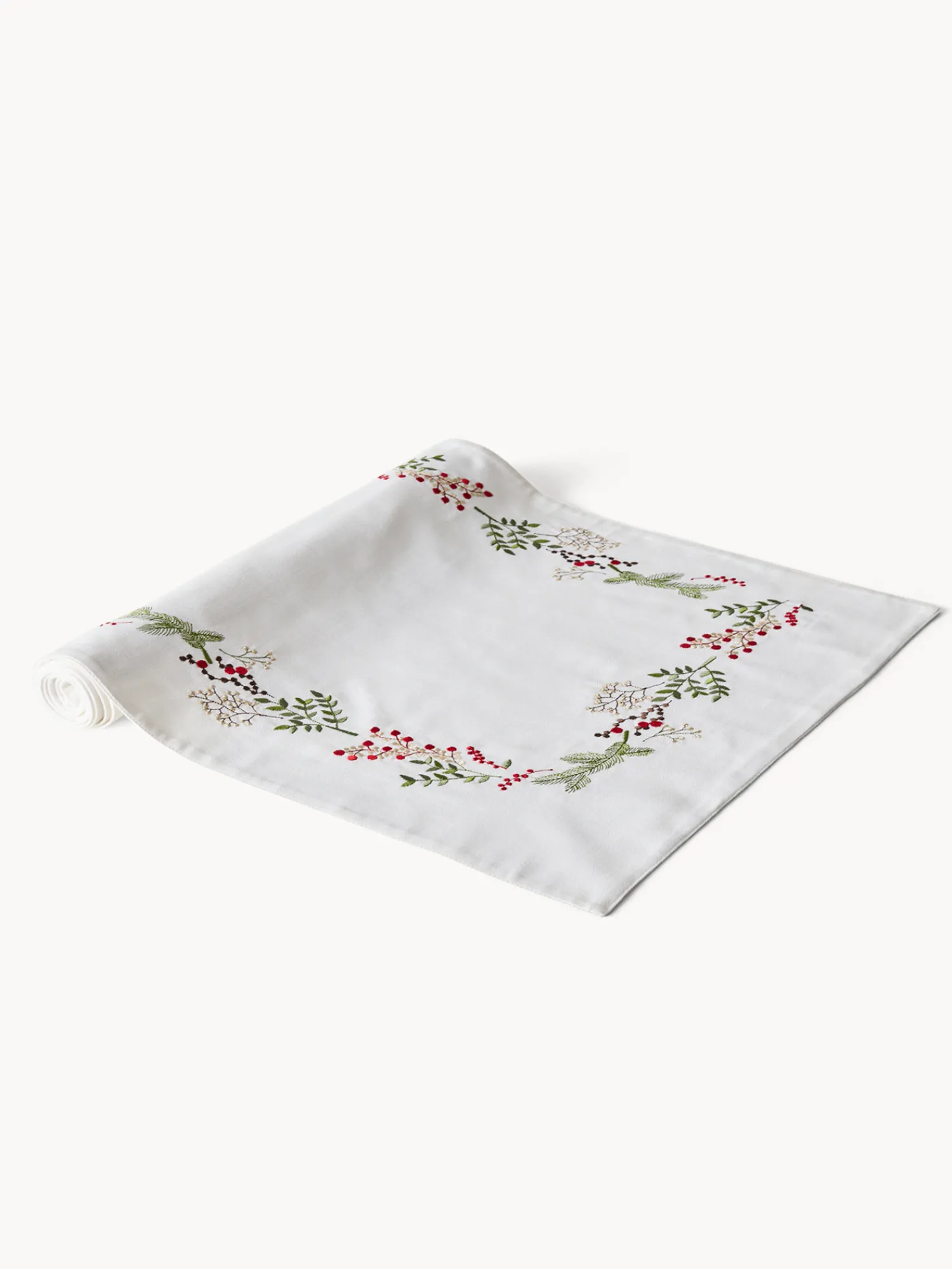 - Tovaglietta twill di puro cotone con ricamo agrifoglio.