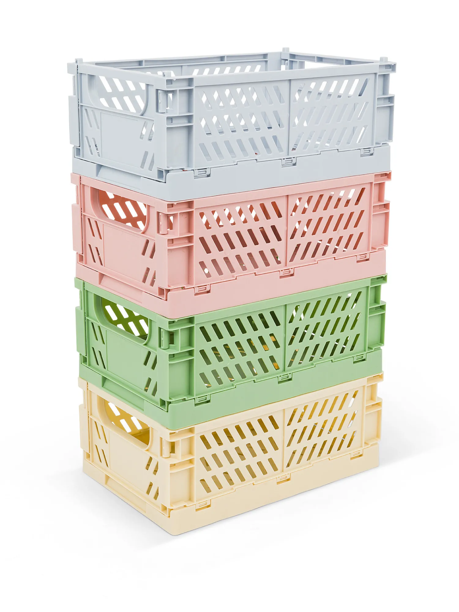 - Scatola pieghevole in plastica tinta unita. Scatole portaoggetti colorate con un caratteristico design traforato. Realizzate in plastica in 2 dimensioni e 4 colori, le cassette multifunzionali possono essere impilate l’una sull’altra, adatte per conservare e organizzare una vasta gamma di articoli su scaffali, tavoli o all’interno di armadi. Ideali per l’ufficio, il guardaroba, la cameretta.
