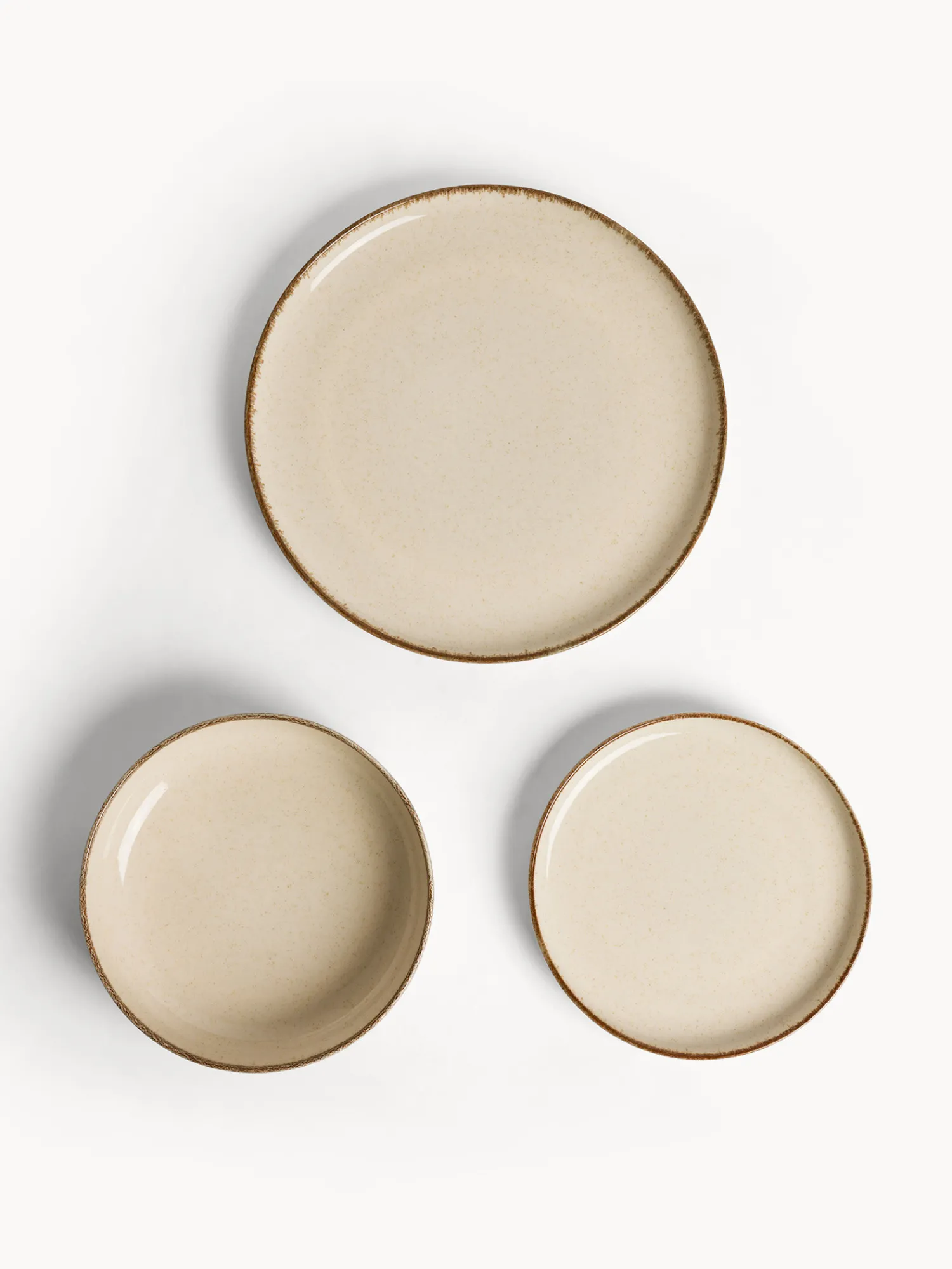 - Rendi ogni pasto un’esperienza elegante e raffinata con il nostro Set di 12 piatti in porcellana. Questo set completo è perfetto per chi ama apparecchiare la tavola con stile, sia per occasioni speciali che per l’uso quotidiano.Il set include: 4 piatti piani da 28 cm: ideali per primi e portate principali, dal design delicato e lineare, adatti a qualsiasi tipo di cucina, 4 piatti fondi da 20 cm: perfetti per zuppe, minestre o piatti con salse, combinano praticità e raffinatezza e 4 piatti da frutta da 20 cm: ideali per dessert, antipasti o snack, completano l’apparecchiatura con armonia. Realizzati in porcellana di alta qualità, questi piatti si distinguono per la loro resistenza, brillantezza e finitura liscia, che li rende non solo belli da vedere, ma anche pratici nell’uso quotidiano. Il colore avorio delicato dona un tocco di eleganza discreta, facile da abbinare a qualsiasi stile di tavola o accessorio. Perfetto come regalo per matrimoni, anniversari, inaugurazioni di casa o per chi desidera rinnovare la propria cucina con un set versatile e completo. Grazie alla loro robustezza e durata, questi piatti mantengono la loro bellezza nel tempo, garantendo un’esperienza di tavola sempre raffinata.
