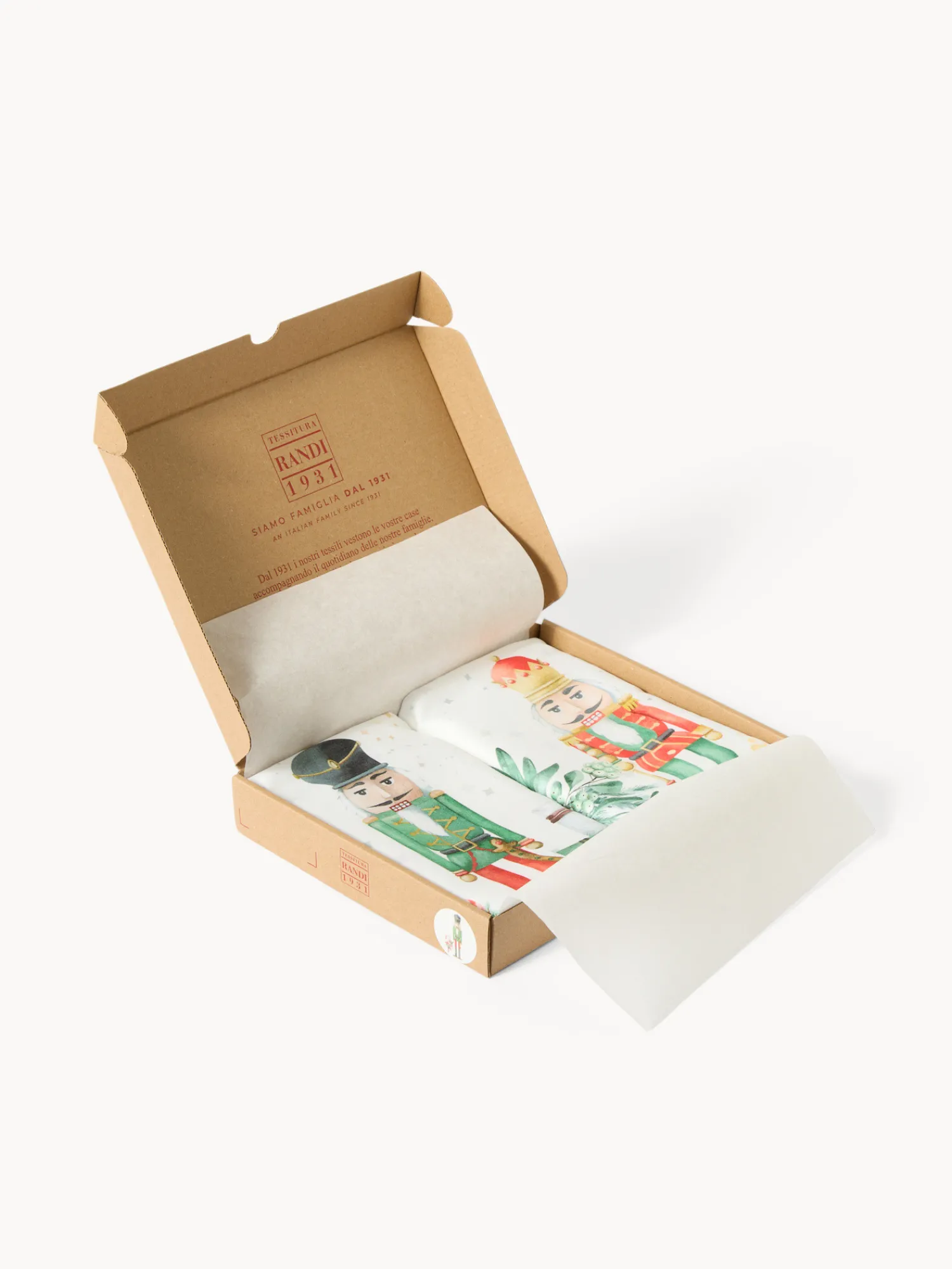 - Gift box composta da due federe in cotone stampato con motivi natalizi. Made in Italy by Tessitura Randi.
