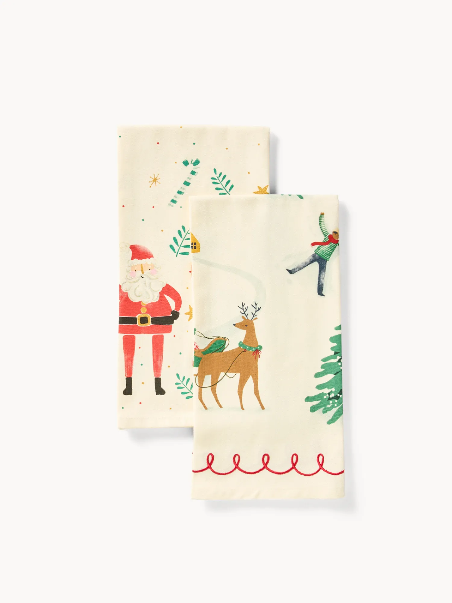 - Set 2 strofinacci con box regalo Realizzati in puro cotone, questi strofinacci uniscono praticità e atmosfera festiva. Perfetti per asciugare le stoviglie grazie all’elevata capacità assorbente, sono facili da lavare e, appesi in cucina, diffondono subito la magia del Natale con la loro allegra stampa natalizia.