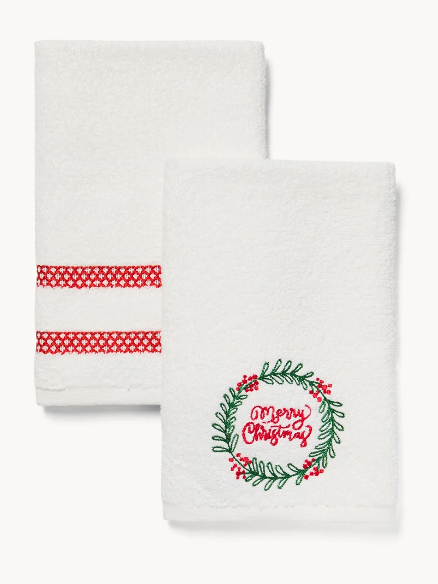 - Set 2 strofinacci con box regalo. Il set di due strofinacci è in morbida spugna di puro cotone, ognuno impreziosito da raffinati e delicati ricami natalizi. La spugna, soffice e ad alta capacità assorbente, garantisce asciugature impeccabili e praticità d’uso, mentre la facile manutenzione ne esalta la funzionalità quotidiana. Presentati in un’elegante confezione regalo, sono un pensiero natalizio prezioso e ricercato, perfetto per sorprendere con stile.
