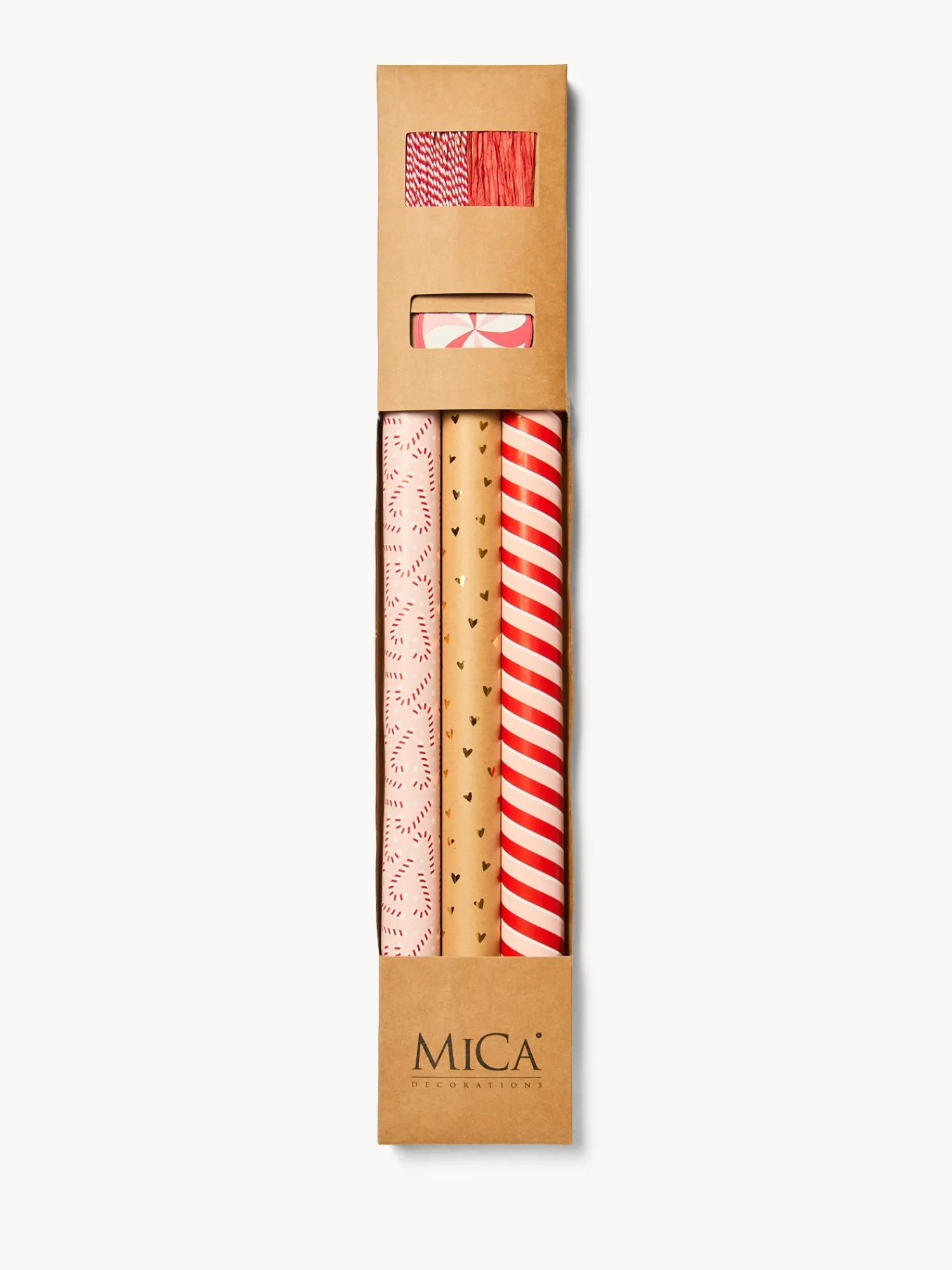 - Set 3 rotoli di carte per pacchetti con cordino e gift card