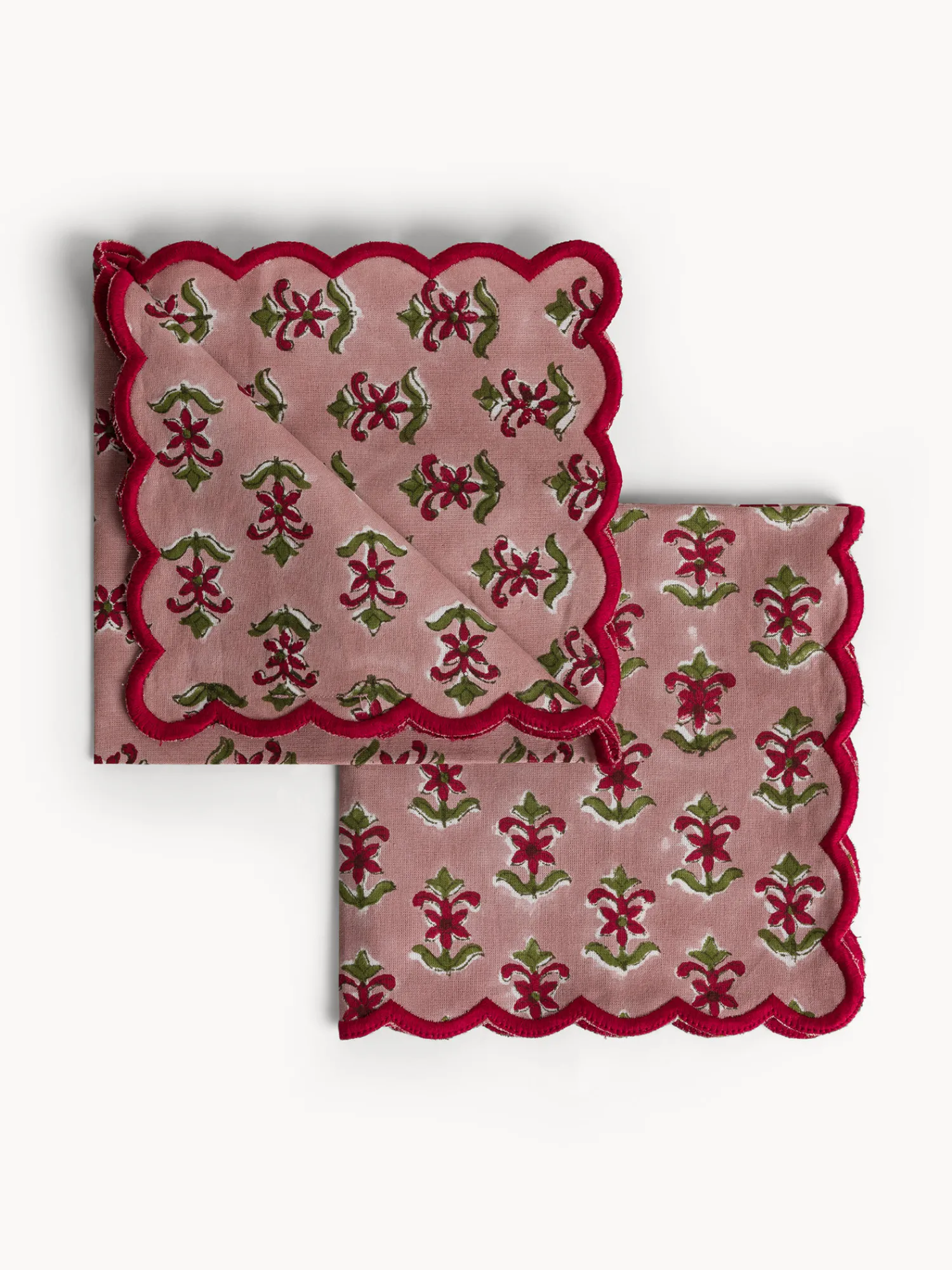 - Set di 2 tovaglioli in puro cotone con stampa block print. La tecnica di stampa block print è una tecnica molto antica, tipica dell’Asia, inizialmente utilizzata per tessuti di pregio destinati alla nobiltà. Gli artigiani creano dei blocchi di legno intarsiati che, intinti nel colore, vengono impressi più volte nella stoffa. Si creano così disegni unici, imperfetti ed autentici.