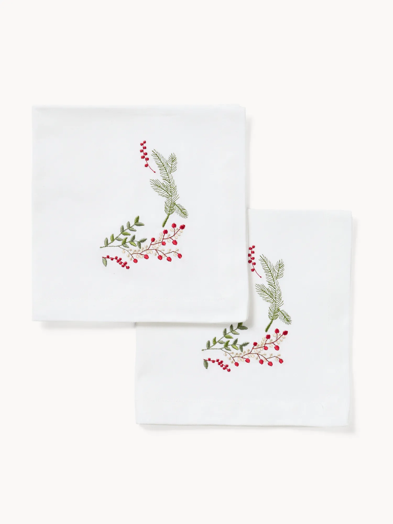 - Set di 2 tovaglioli in twill di puro cotone con ricamo agrifoglio. Il grazioso ricamo di agrifoglio porta il fascino natalizio nella tavola, donando al servizio un tocco di raffinatezza.