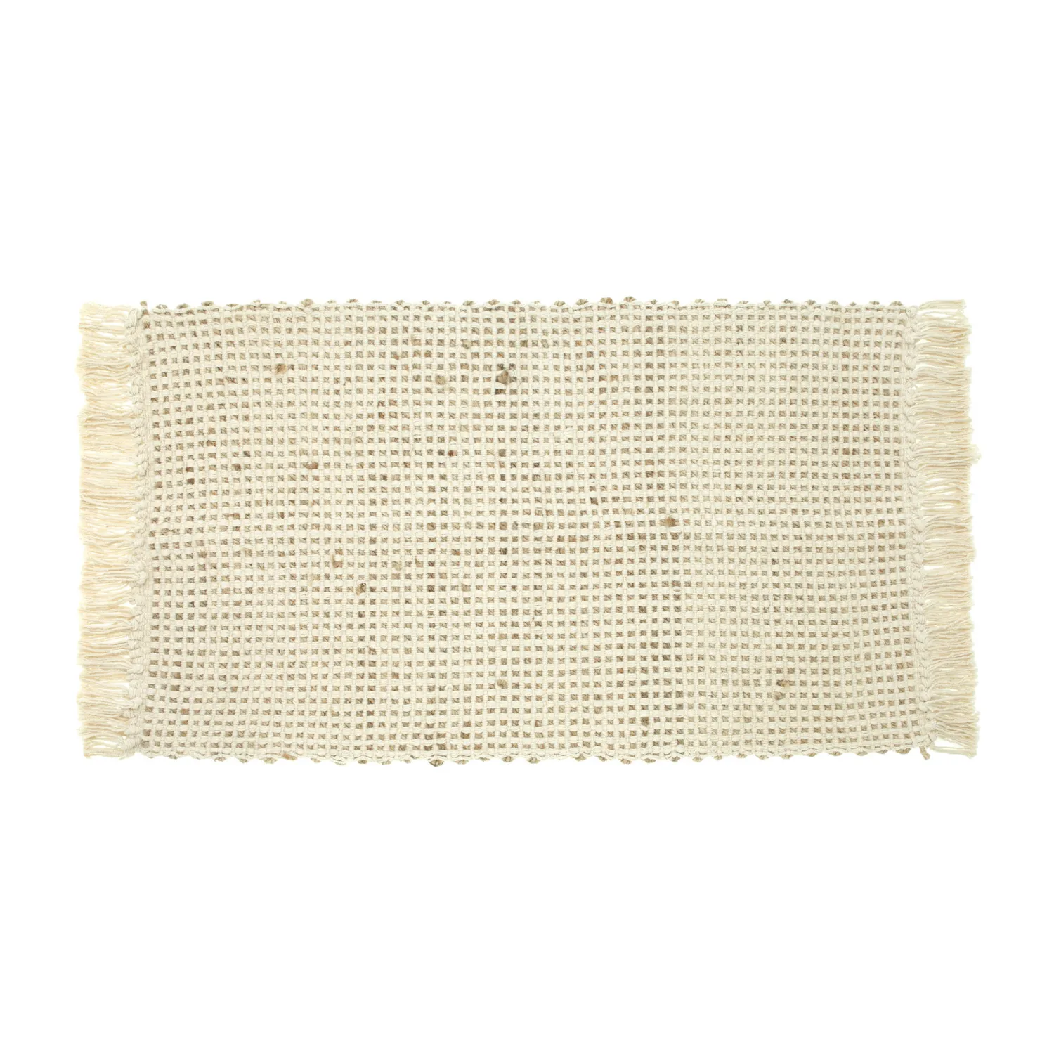 - Tappetino sottolavello in cotone e juta naturale, con frange laterali.
