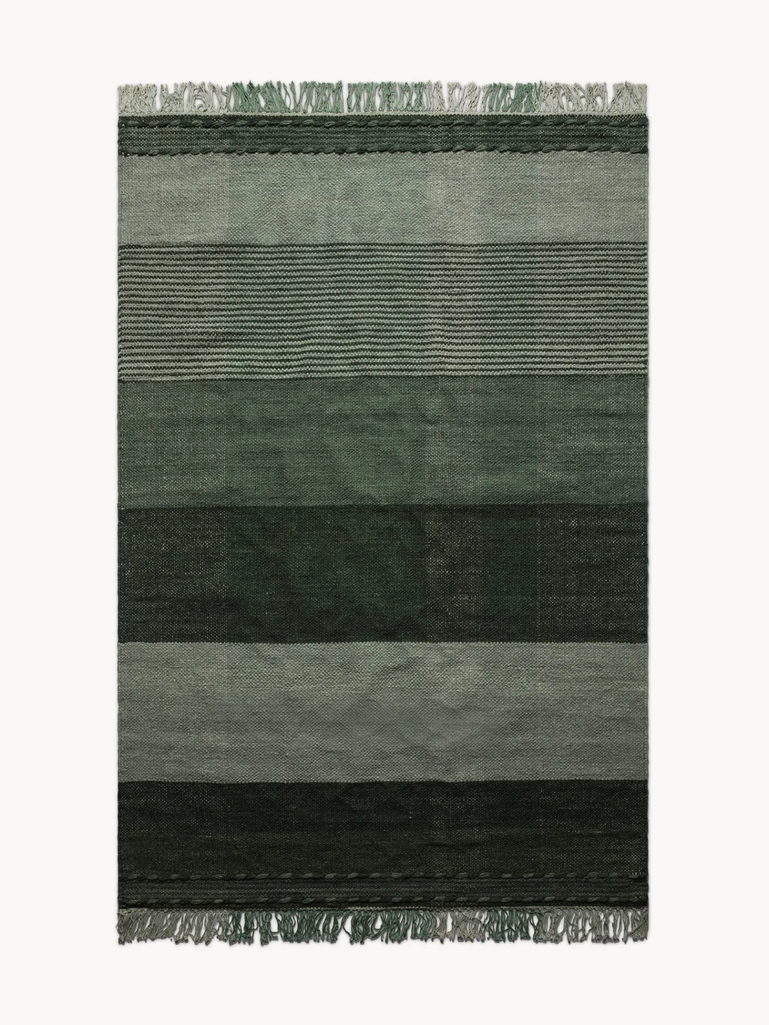 - Tappeto rettangolare in misto lana realizzato a mano, caratterizzato da fasce colorate e frange decorative. La sua struttura artigianale lo rende elegante e accogliente, perfetto per ogni ambiente della casa. Adatto anche a pavimenti con riscaldamento a pavimento. Facile da mantenere: aspirare regolarmente e pulire solo con un panno leggermente umido. Evitare di bagnare direttamente le fibre di juta e tagliare eventuali estremità allentate invece di tirarle, per preservare la qualità del tappeto nel tempo.