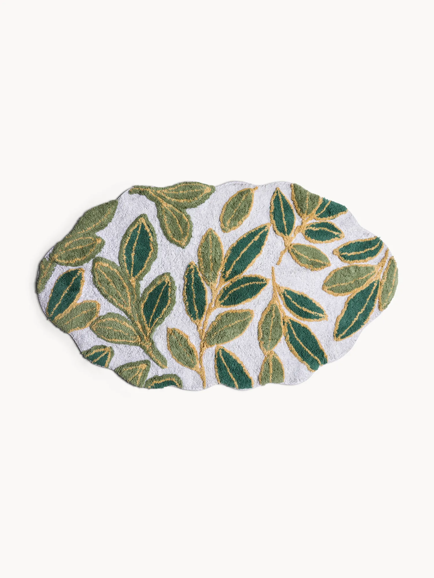 - Tappeto bagno in pile di cotone taftato con stampa foglie autunnali, morbido e assorbente. Il retro con spray latex antiscivolo garantisce stabilità e sicurezza, unendo praticità e stile stagionale.