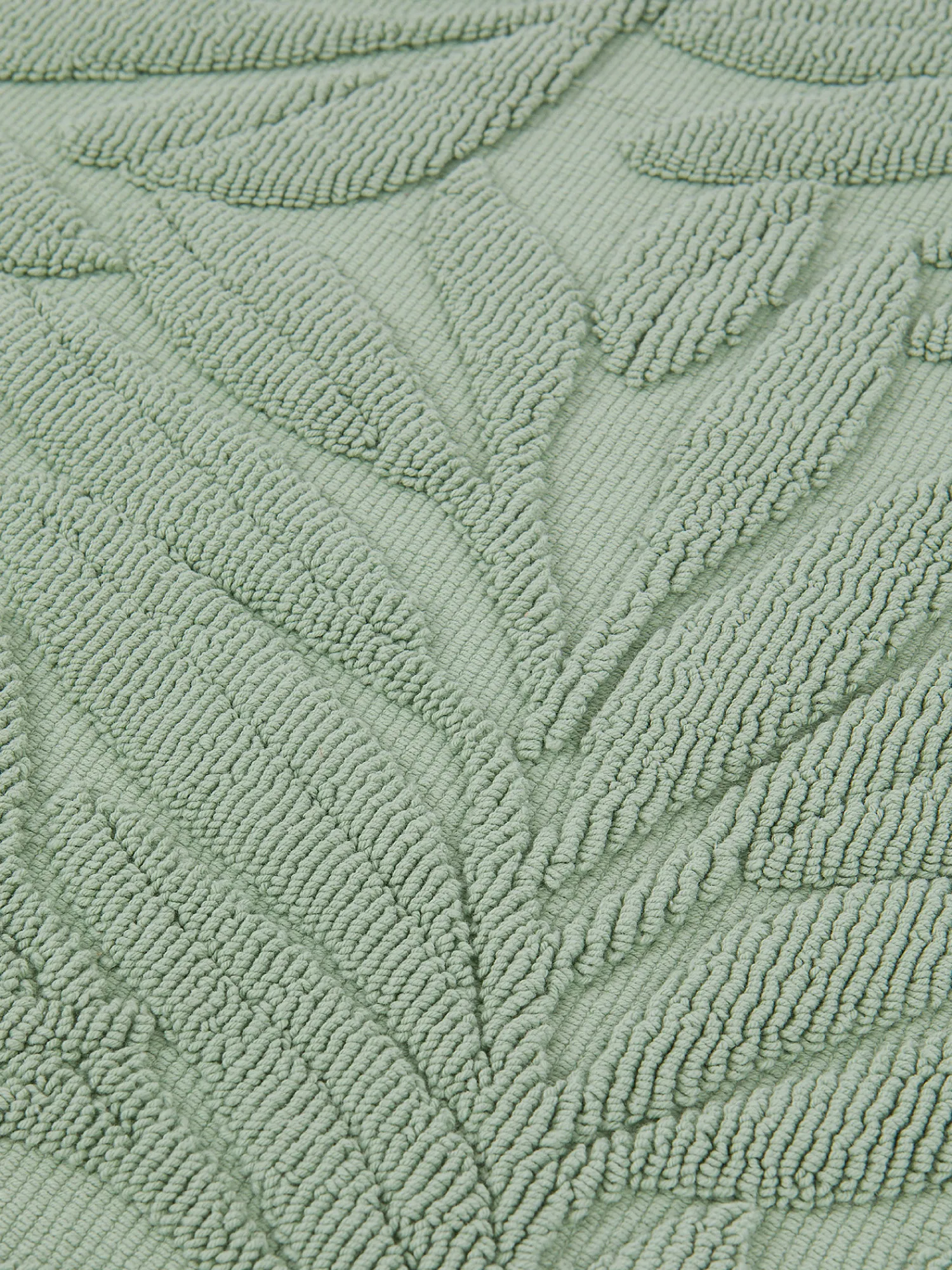 - Scendidoccia Zefiro in cotone tinta unita a pelo corto con lavorazione jacquard geometrica e floreale in rilievo.Trattamento “stone whashed” per un effetto vintage.