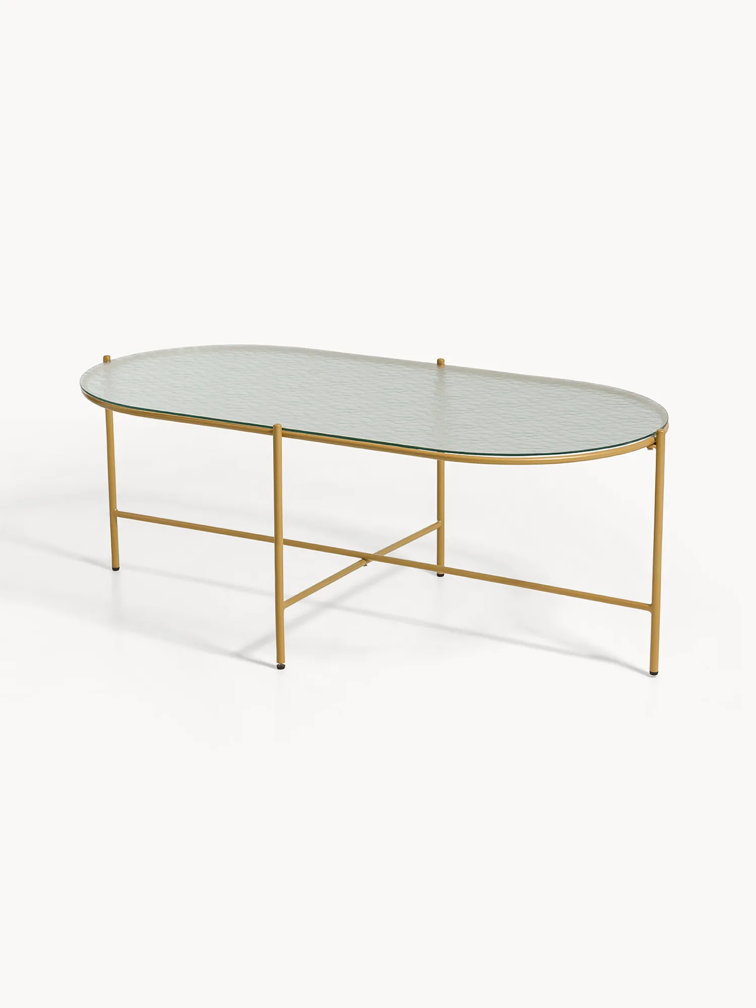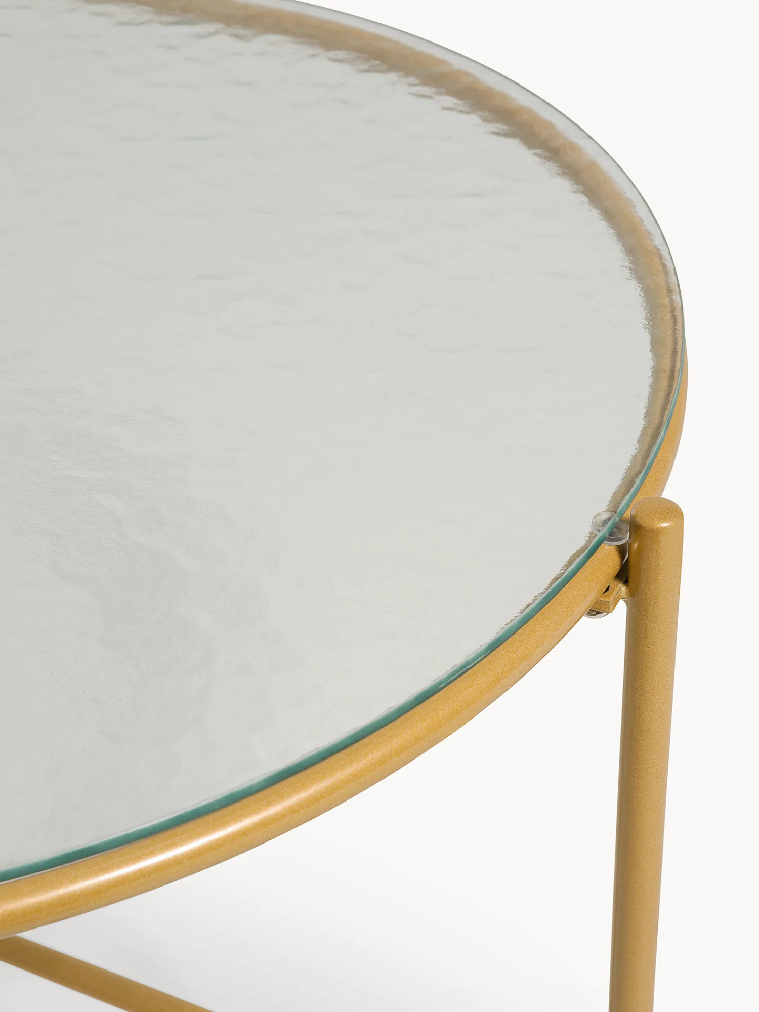 - Aquatex – Tavolino con ripiano in vetro texturizzato, struttura in acciaio e finitura ottone. Elegante e versatile, dona luminosità e stile a ogni ambiente.