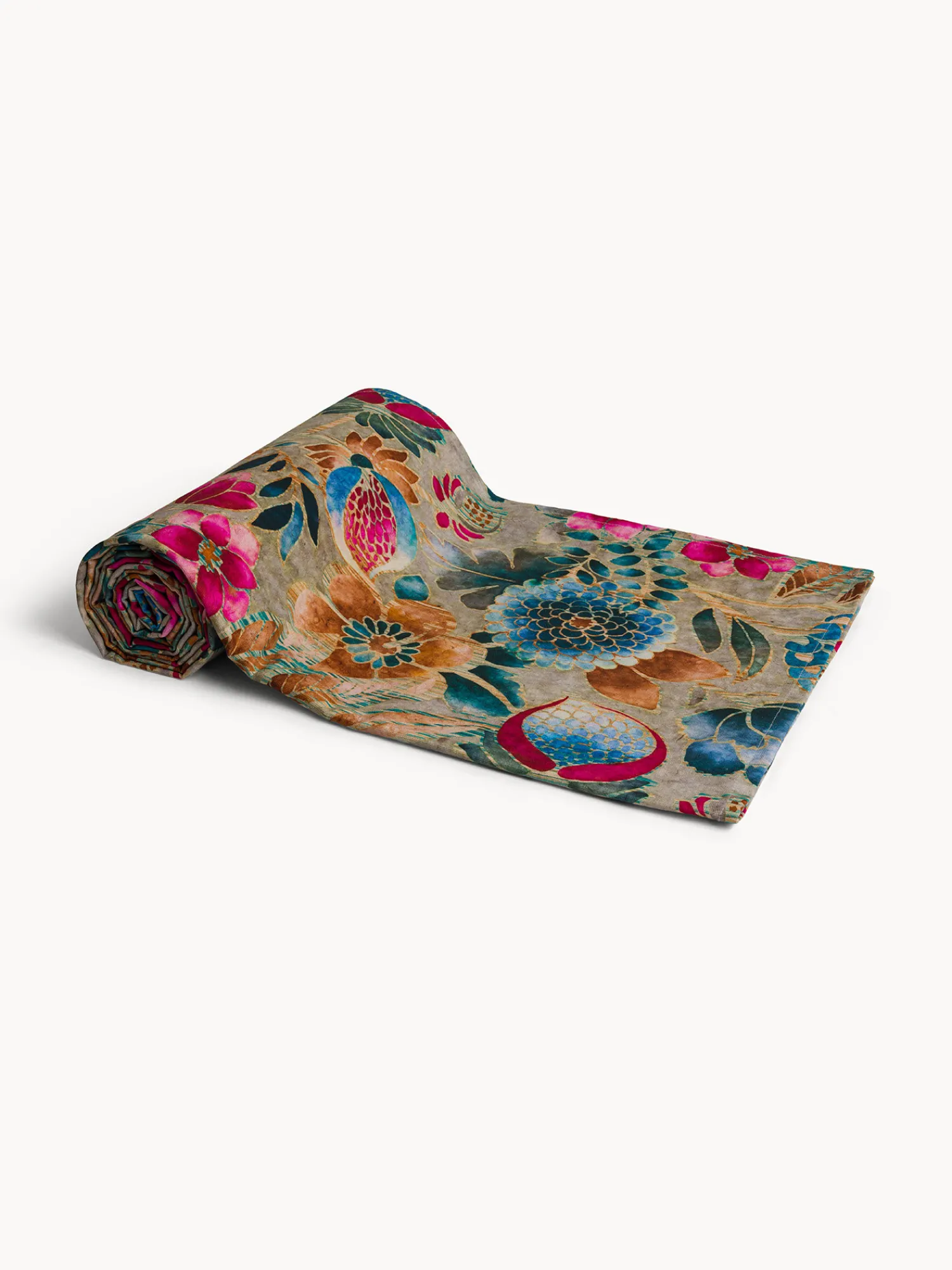 - Telo arredo realizzato in resistente panama di cotone con stampa floreale, perfetto per aggiungere un tocco di freschezza e stile agli ambienti domestici. Versatile e funzionale, può essere utilizzato come copridivano, copriletto leggero, telo da picnic o per impreziosire e decorare angoli speciali della casa.