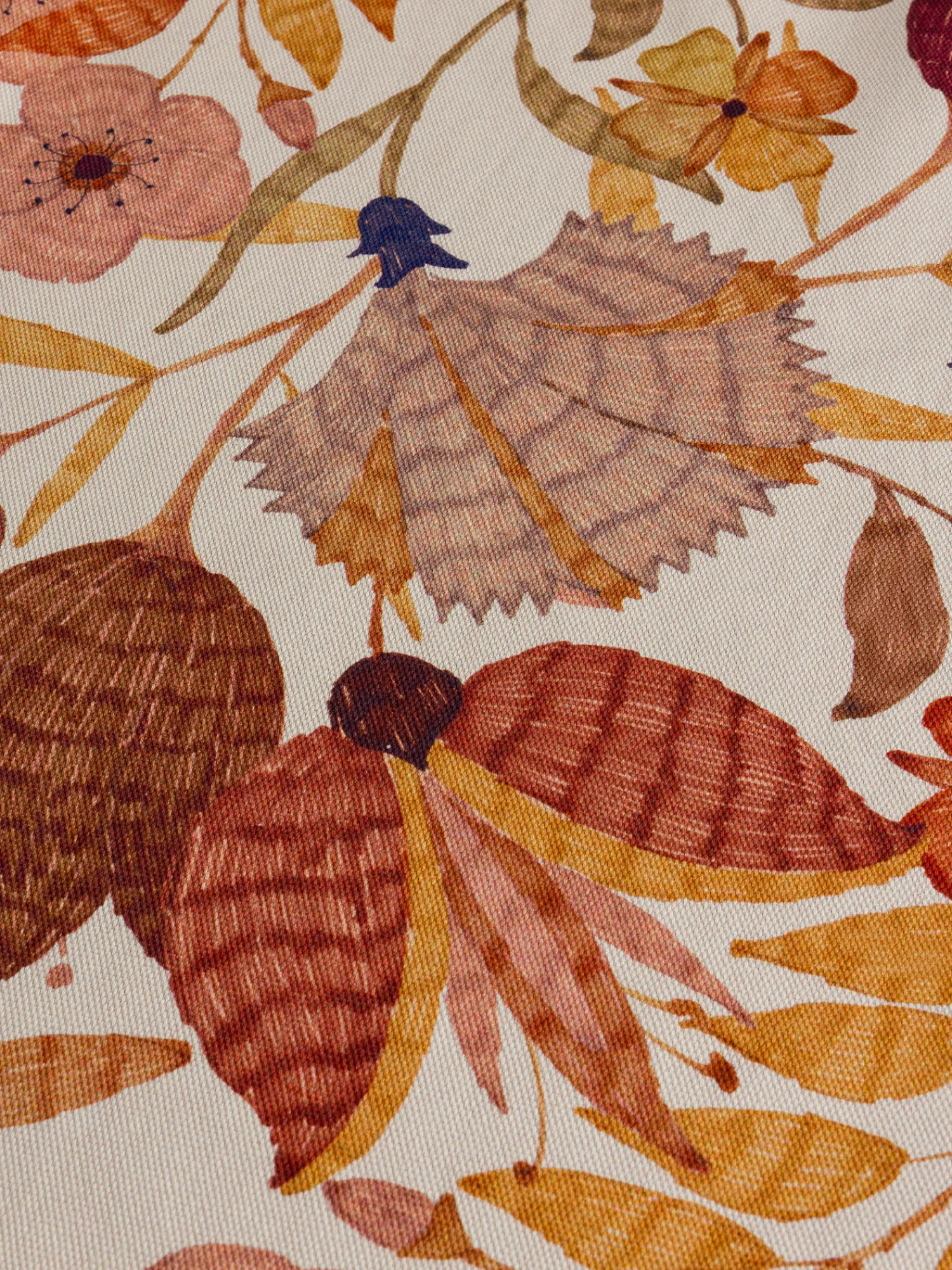 - Tovaglia in panama di puro cotone con stampa foliage, ideale per trasformare la tua tavola in un vero e proprio omaggio all’autunno. Morbida e resistente, unisce stile e funzionalità, portando calore, colore e un tocco naturale ad ogni pasto. Perfetta per creare un’atmosfera accogliente e raffinata, rende ogni momento a tavola speciale e armonioso.
