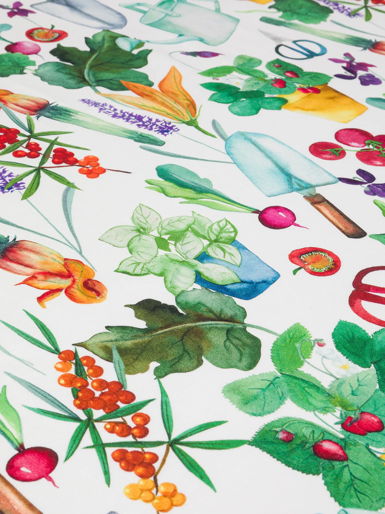 - Tovaglia con stampa vegetale in panama di puro cotone.