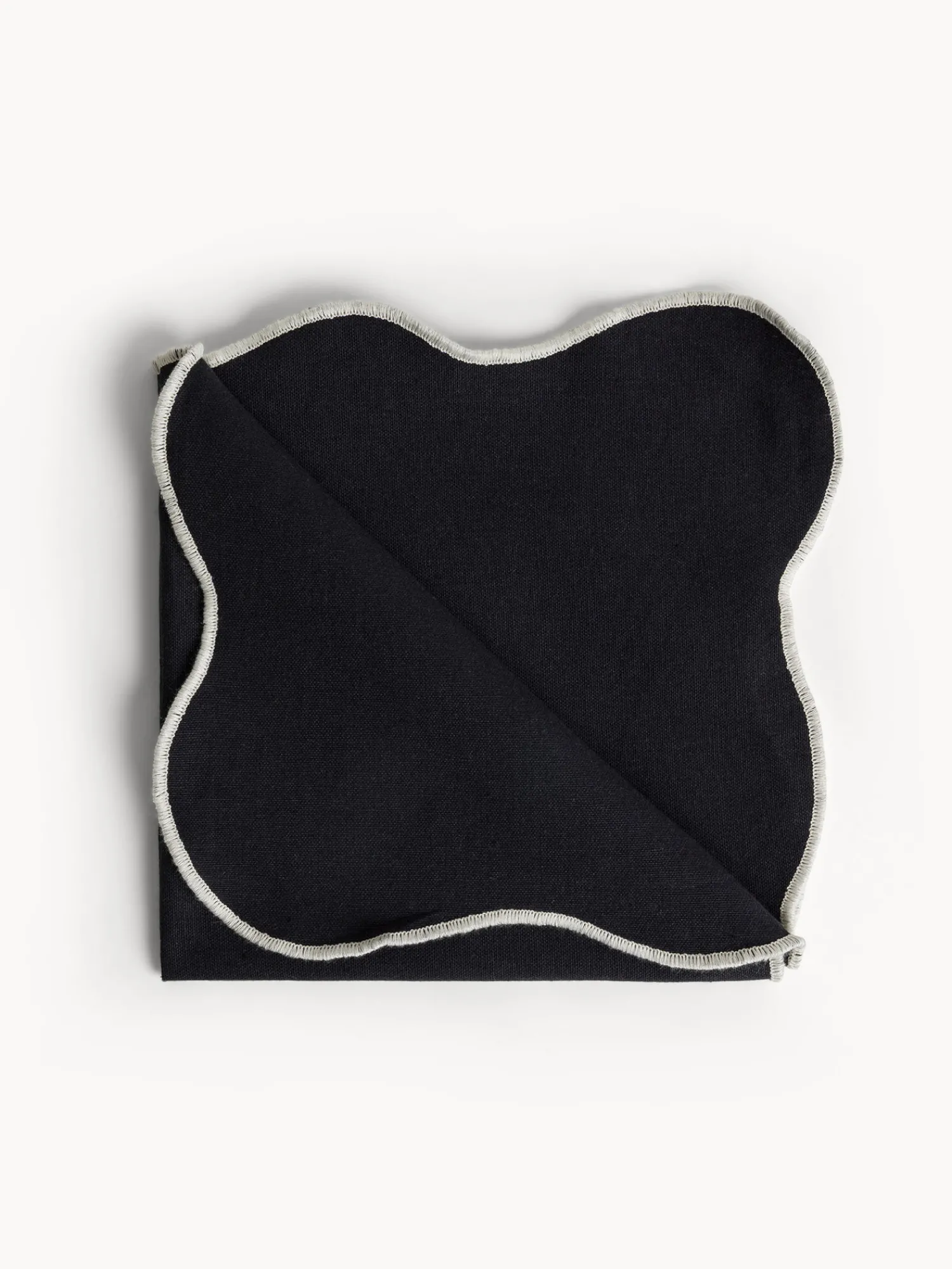 - Tovagliolo in cotone chambray con bordi smerlati e overlock a contrasto. Disponibile in 12 colori.