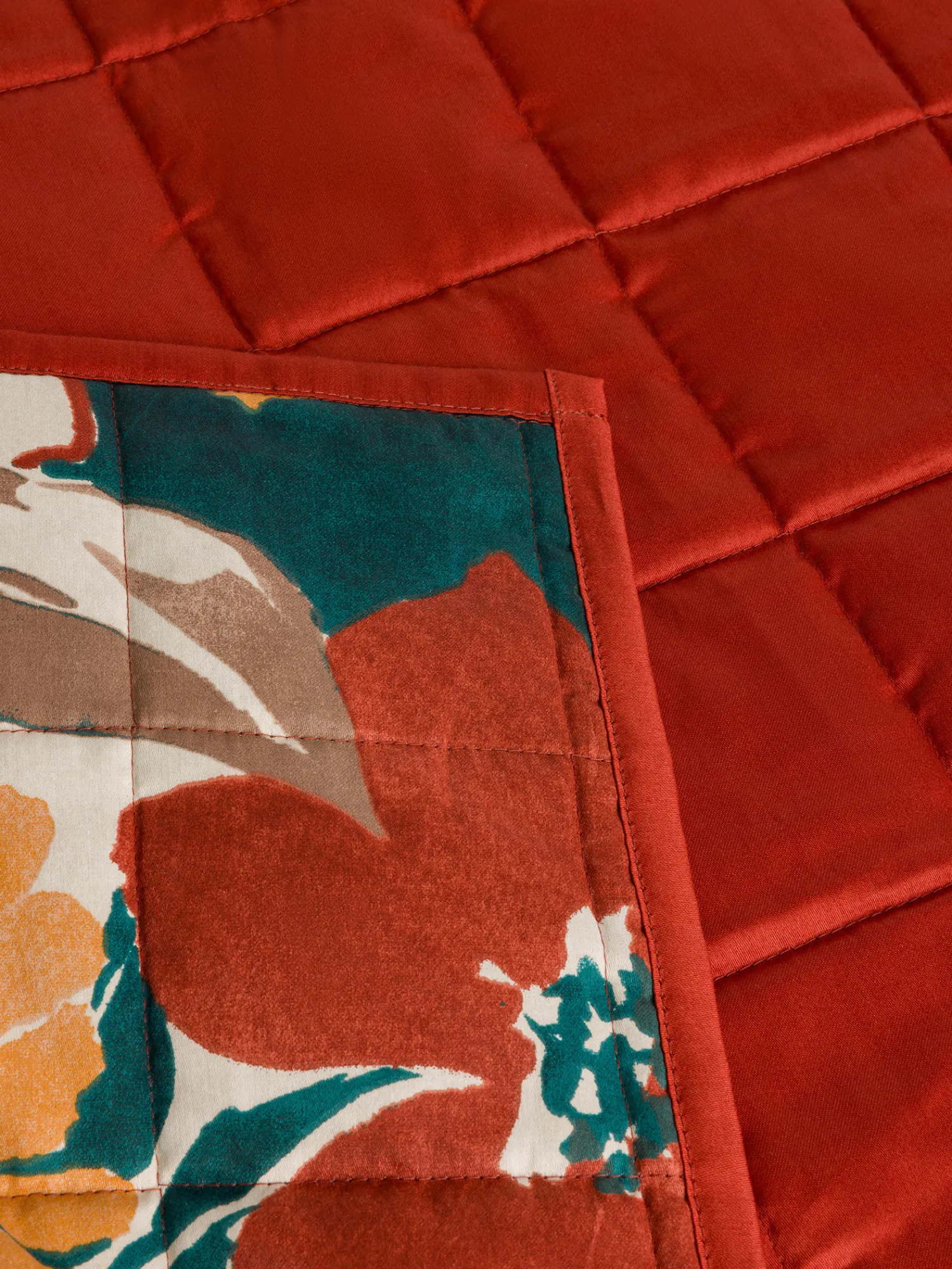 - Trapunta matrimoniale in raso di cotone 200TC, impreziosita da stampa floreale. Con imbottitura peso invernale da 300 GSM, garantisce calore e comfort durante la stagione fredda. Certificata Oeko-Tex, assicura qualità e sicurezza dei materiali.
