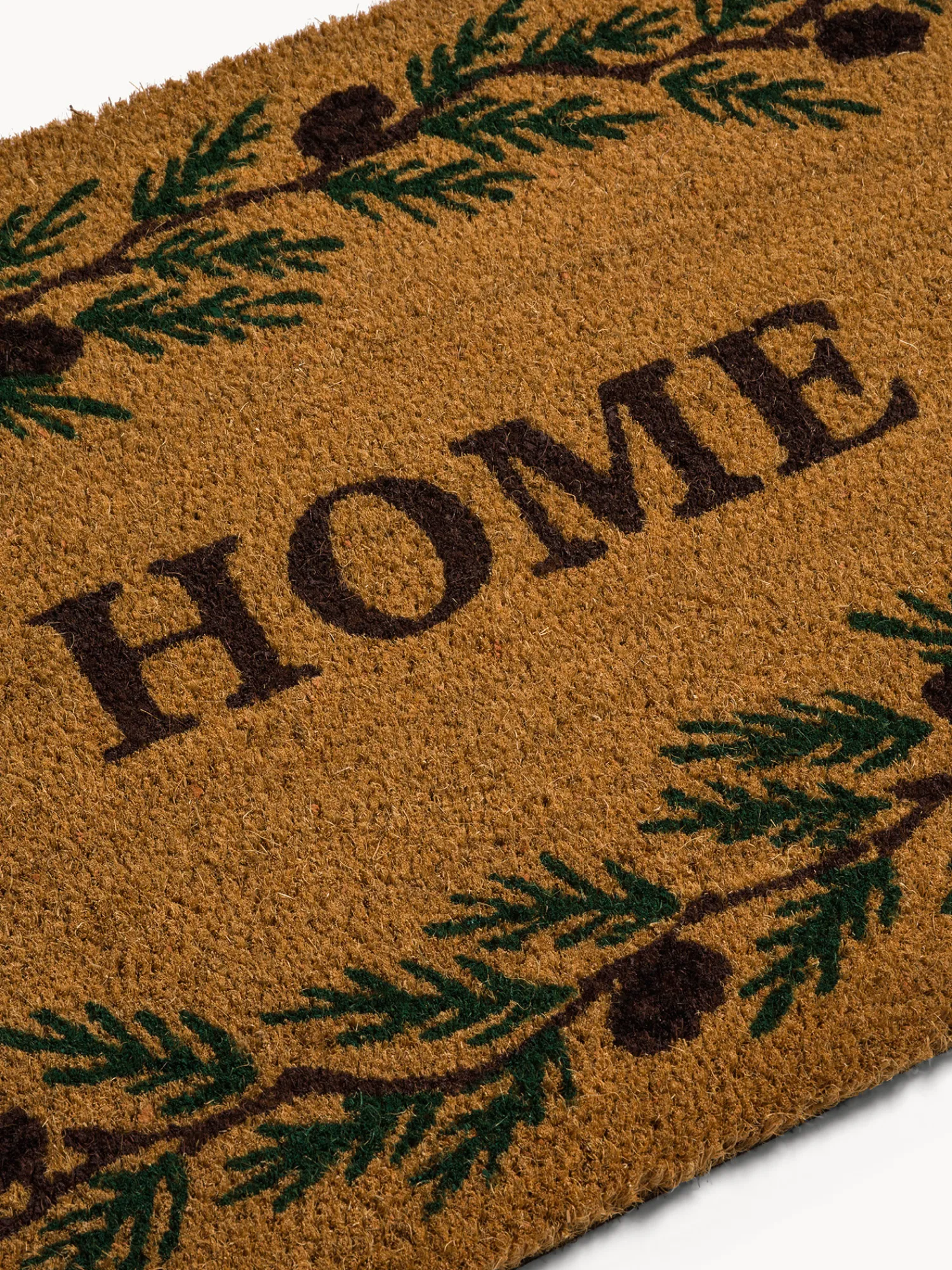 - Zerbino in fibra di cocco naturale con stampa “Home” in stile autunnale, perfetto per accogliere i tuoi ospiti con calore e originalità. Resistente e durevole, è dotato di base in PVC antiscivolo per garantire stabilità e sicurezza. Un dettaglio decorativo che unisce praticità e fascino stagionale.